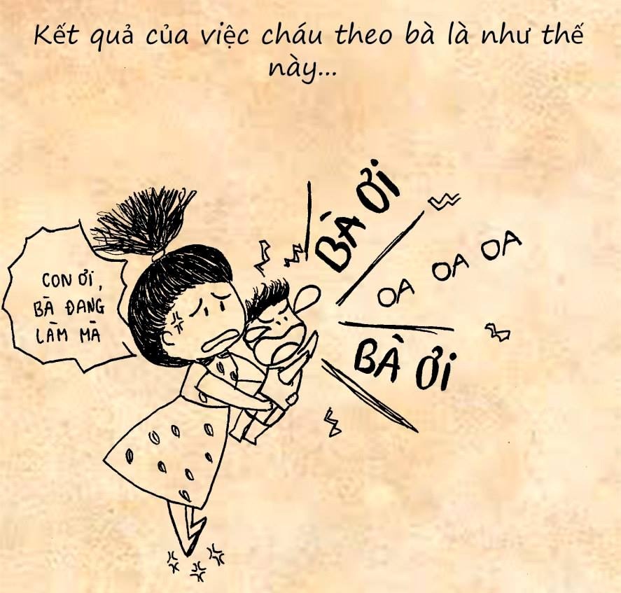 | Bà cũng luôn vướng phải tình huống khó xử khi đang bận trăm công nghìn việc, cháu lại đòi theo. |