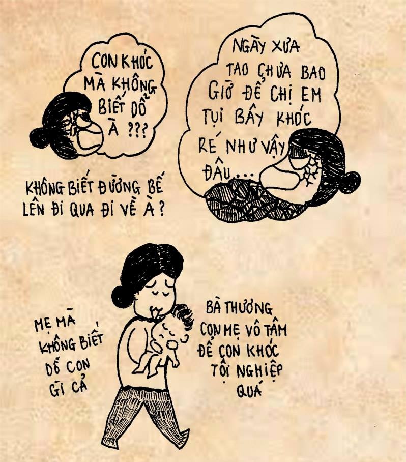 | Mỗi đêm, khi con gái bối rối vì cháu bé khóc, bà chính là người đứng ra dỗ dành. |