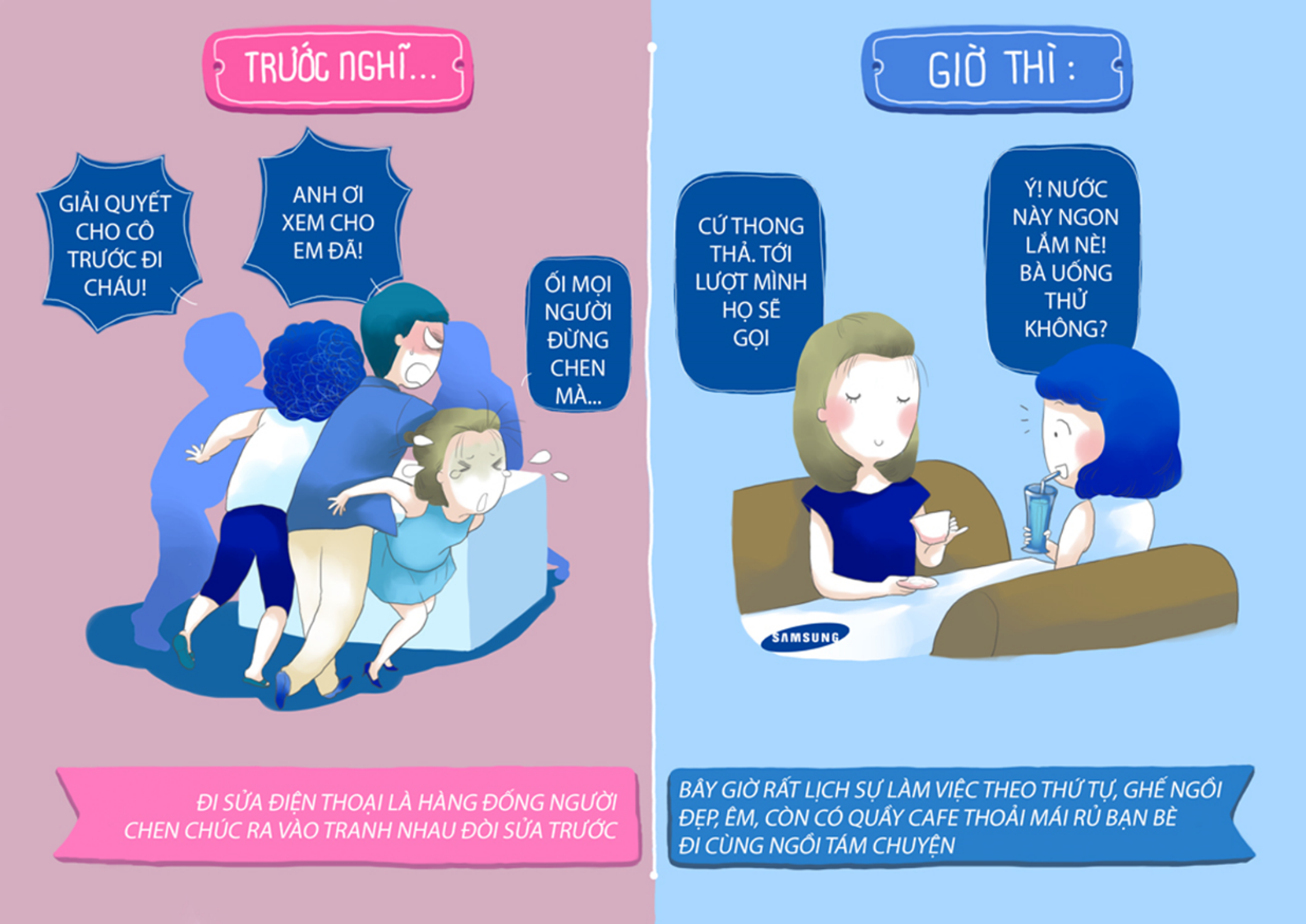 | Có trung tâm chăm sóc khách hàng còn hào phóng tặng quà cho khách đến sửa điện thoại. |