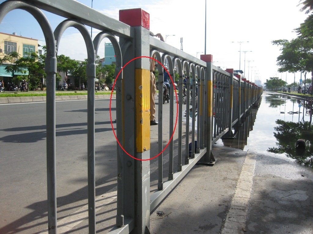 | Xe của nạn nhân tông mạnh và dải phân cách bằng sắt. |