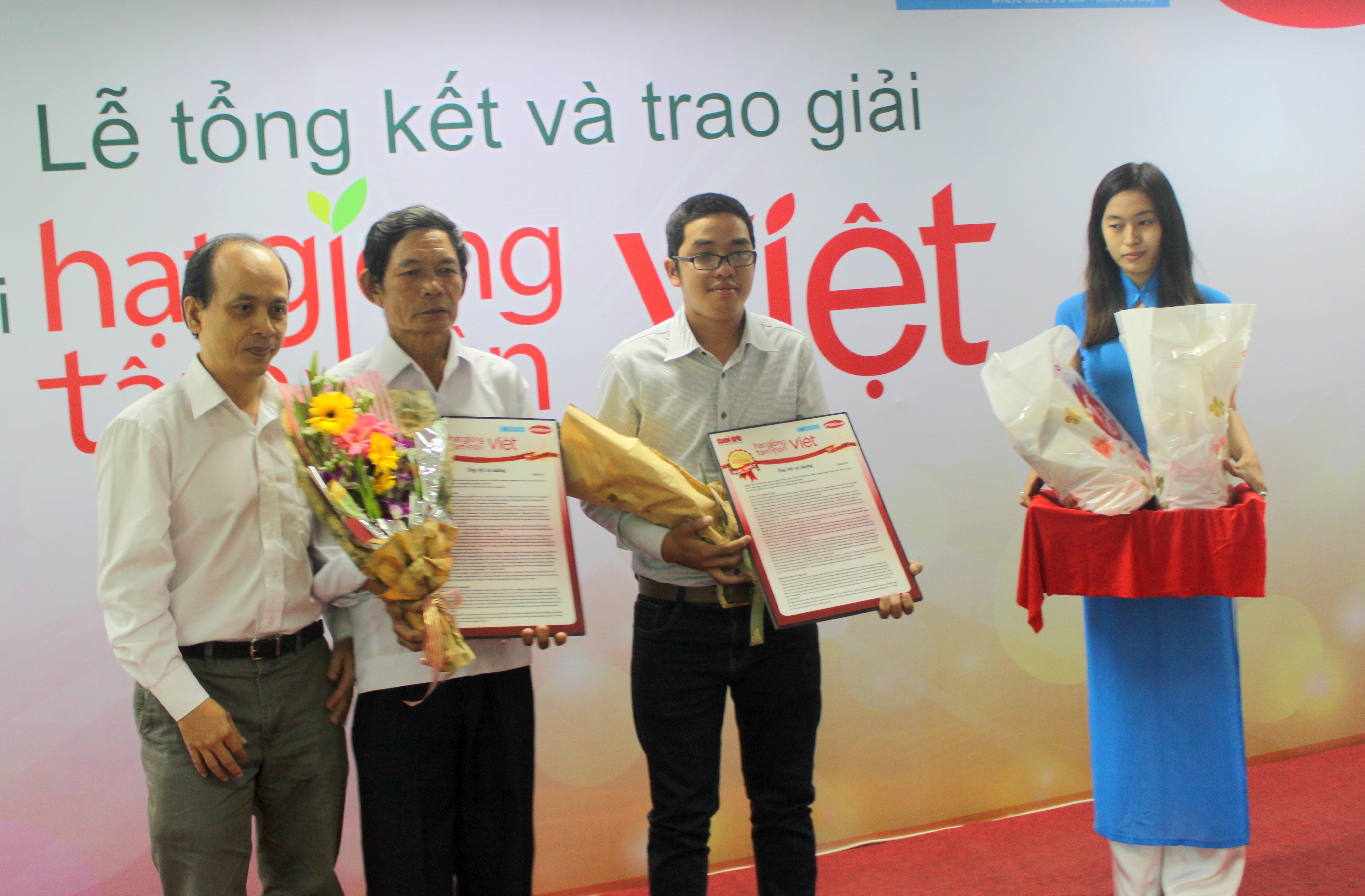 | Tác giả và nhân vật trong bài viết “Ông Mỹ vá đường” giành giải nhất của cuộc thi. |