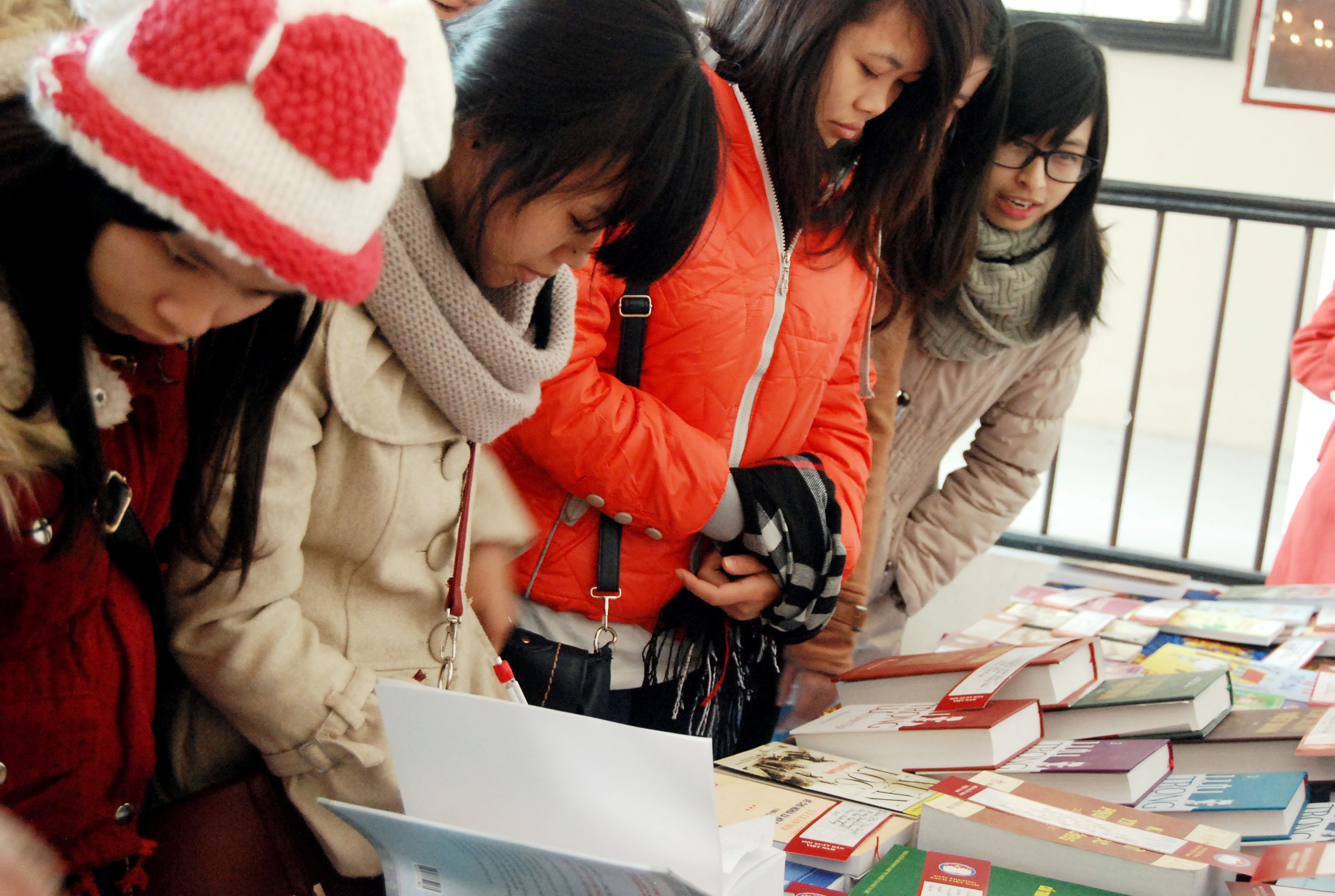| Những cuốn sách được trưng bày bên thềm lễ trao giải. |