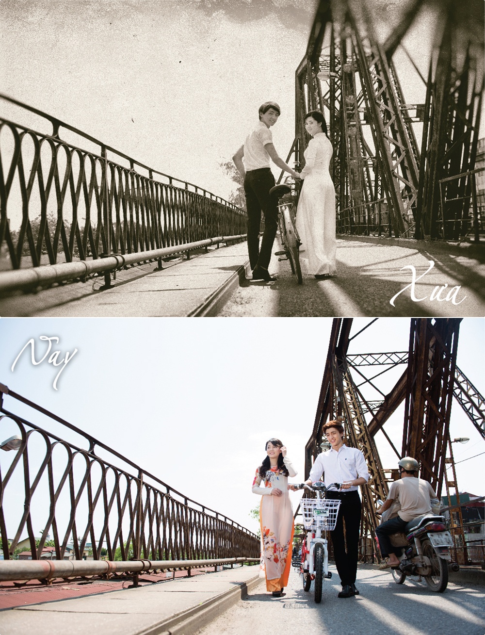 Còn đây là những bức ảnh trong bộ ảnh Hà Nội xưa và nay do một nhóm bạn trẻ Hà Nội chụp tại các địa điểm lịch sử ở Hà Nội.