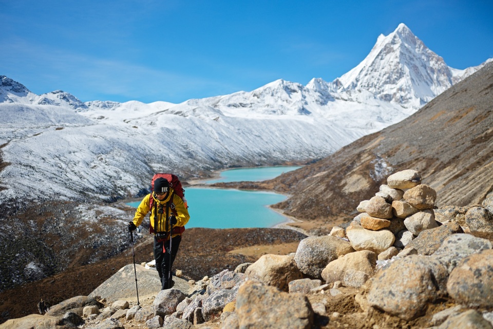 | Lý Hiện trekking núi tuyết Kula Kangri Tây Tạng, ngày 10/12. Ảnh: Weibo/Lý Hiện. |