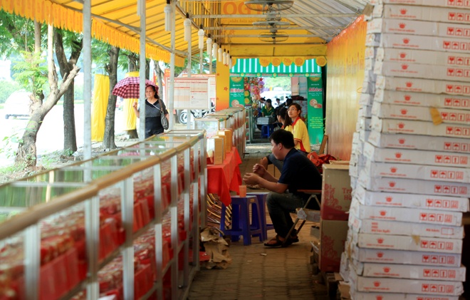| Buổi chiều ế ẩm tại một gian hàng bánh trung thu sản xuất theo kiểu công nghiệp. |