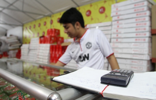 | “Bán hàng tại ngã tư Lê Văn Lương - Hoàng Minh Giám 4 năm nay nhưng mỗi năm hàng bán chận hơn, chúng tôi cũng không nhập nhiều bánh, hàng ngày mở cửa từ 9h sáng tới 9h tối, bình quân bán khoảng 15-20 hộp”, Một chủ gian hàng bán bánh cho biết. |