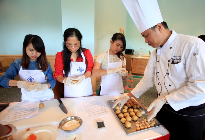 | Trong khi đó không ít người đã tìm đến các khóa học làm bánh trung thu để tự mang đến những sản phẩm sạch cho gia đình, một phần cũng vì sự hiếu kỳ. |