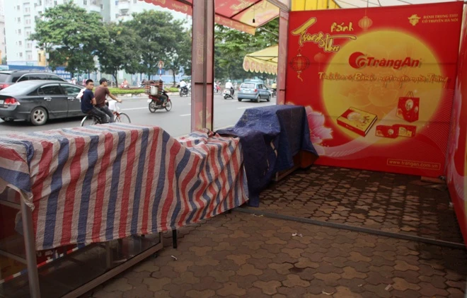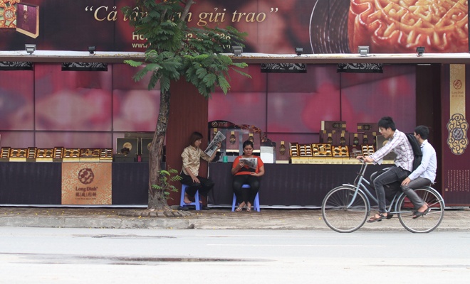 | Trái lại trên các tuyến phố lớn chuyên bán bánh trung thu như Lê Văn Lương, Kim Mã, Giảng Võ, Láng Hạ, Thái Hà…chung cảnh đìu hiu vắng khách. |