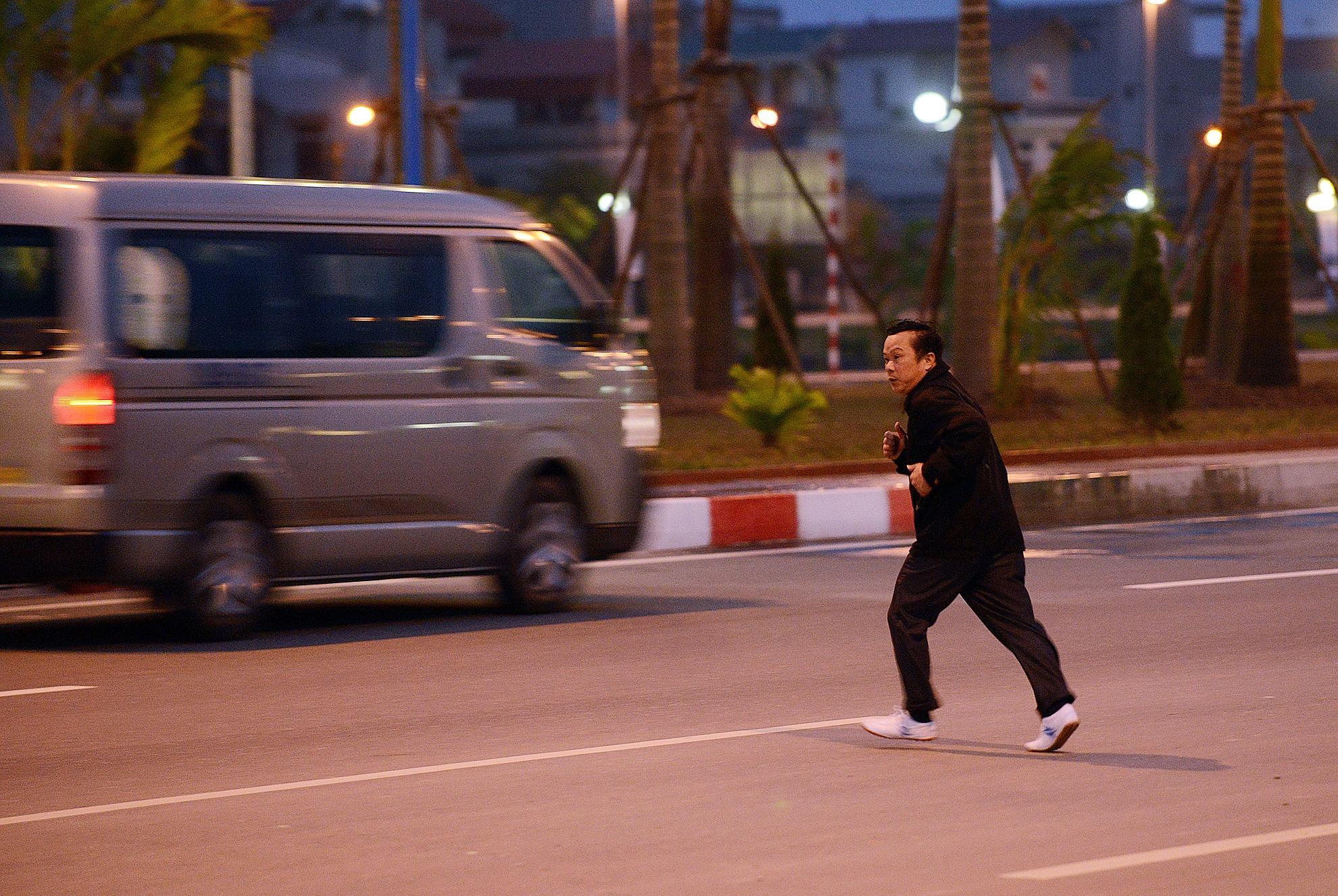 Người tập thể dục về buổi tối tại đoạn thuộc xã Nguyên Khê, huyện Đông Anh.