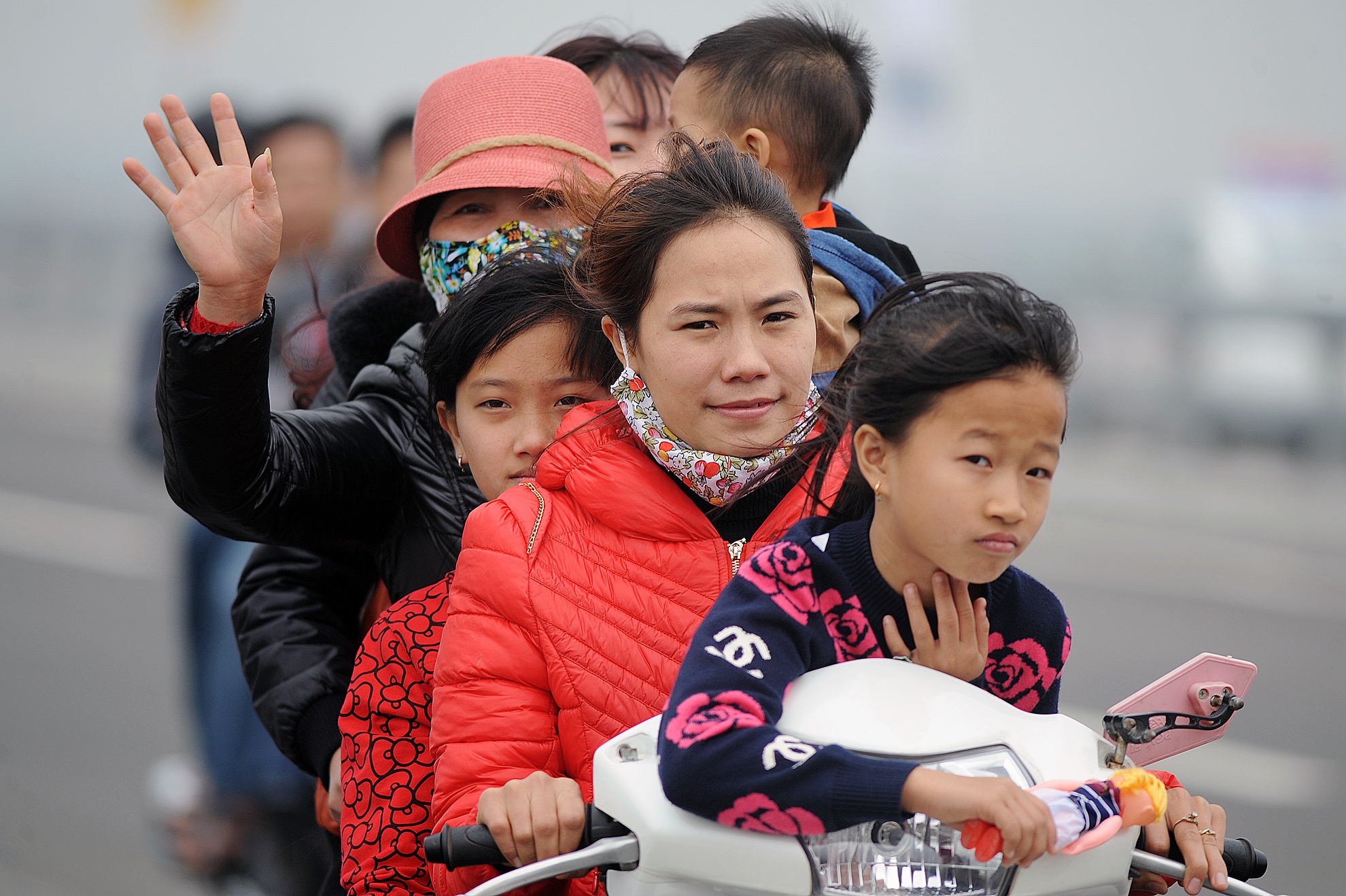 Ngày xưa ở đường làng xe máy chở từ 4-5 người như thế này không lo bị cảnh sát xử phạt, đến nay có đường cao tốc, người dân vẫn quen nếp cũ.