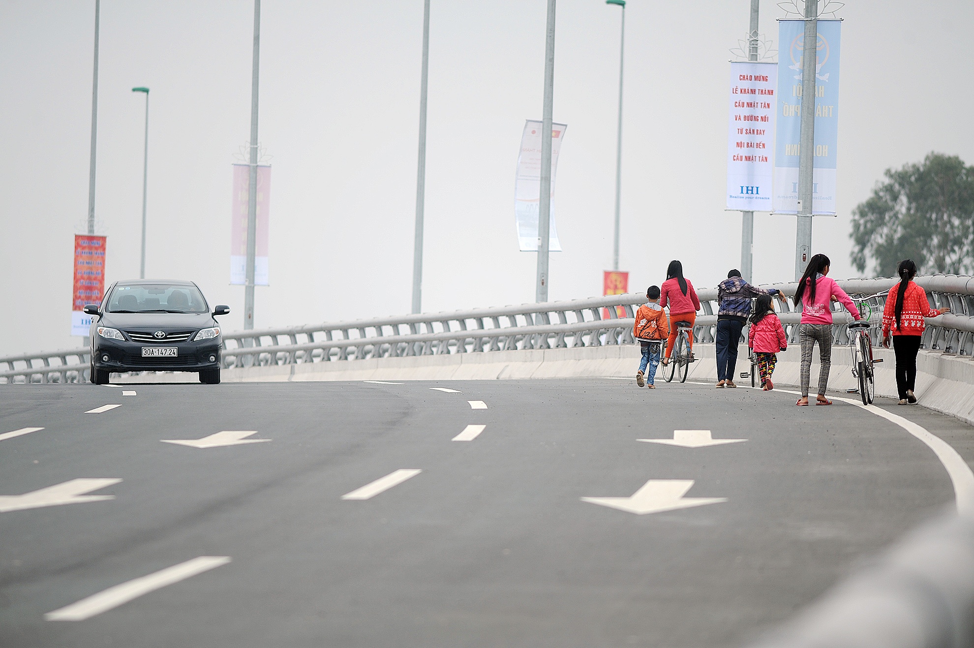 Sau khi cao tốc Nội Bài - Nhật Tân (đường Võ Nguyên Giáp) thông xe được vài ngày, cảnh tượng này diễn ra liên tục. Người dân chưa làm quen được với việc đi qua hầm chui hay cầu vượt bộ hành.