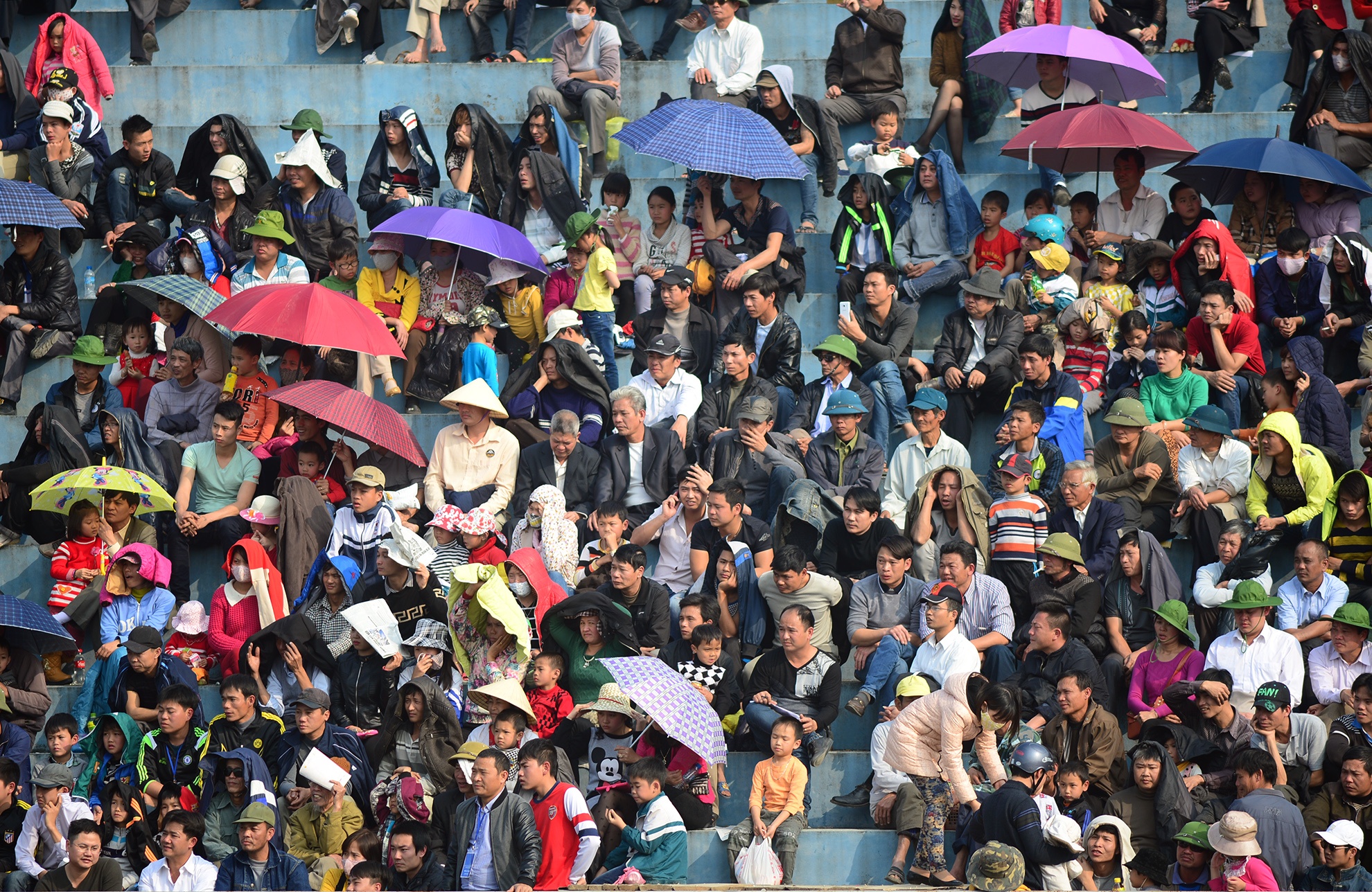 | Có khoảng 10.000 khán giả đến sận động trung tâm huyện để cổ vũ. Giá vé vào xem 50.000 đồng/người. |