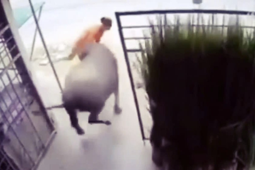 Hình ảnh con trâu húc bà Tư khiến bà gãy 4 xương sườn. Ảnh cắt từ video. |