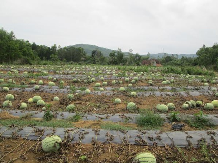 | Dưa chín ngập đồng, nông dân không buồn thu hoạch. |
