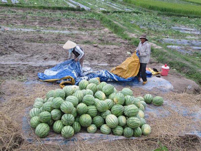 | Vợ chồng bà Đặng Thị Chư và ông Nguyễn Tấn Nam (xã Tịnh Trà, huyện Sơn Tịnh) bán bán đổ số dưa này với giá 70.000 đồng. |