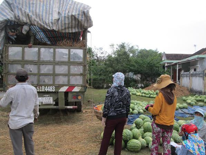 | Các thương lái hùn nhau mua chung 1 xe dưa. |