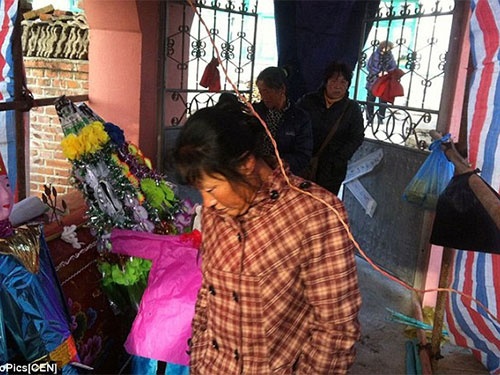 | Hàng xóm tiếc thương trong đám tang người phụ nữ xấu số. Ảnh: CEN. |