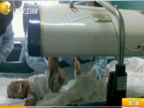 | Em bé đang được cấp cứu tại bệnh viện. Liaoshen Evening News. |