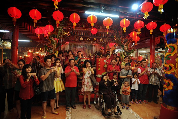 | Người dân Indonesia từ già tới trẻ chắp tay và cầu nguyện những điều tốt đẹp trong năm mới tại chùa Hong San Ko Tee. Như nhiều quốc gia châu Á, người Indoneisa gốc Hoa tin rằng, dâng hương lễ Phật vào ngày mùng 1 sẽ đem lại may mắn cho họ suốt cả năm. |