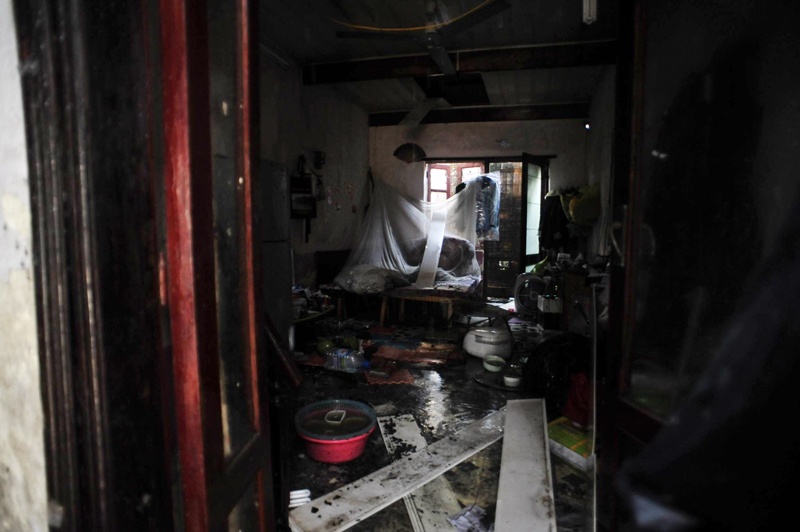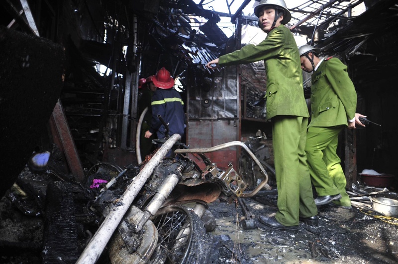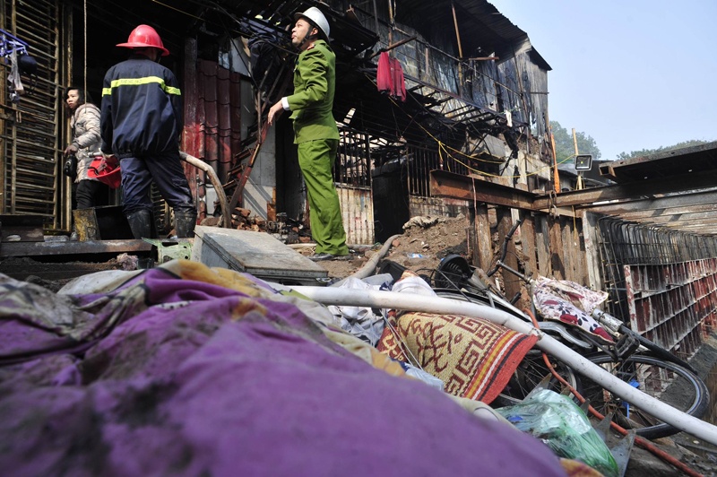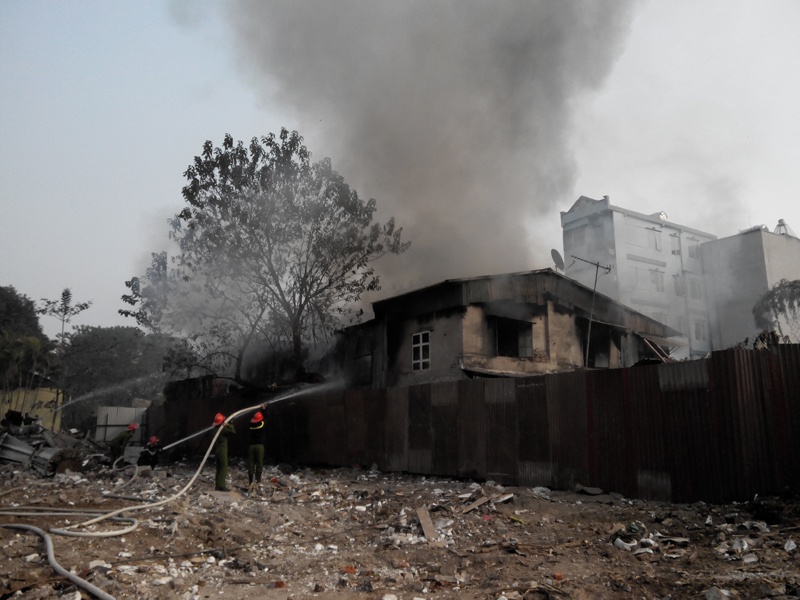 | Một số người sợ hãi ôm tài sản bỏ chạy tán loạn ra ngoài, nhiều phụ nữ, trẻ em kêu khóc. Một cô gái bị bỏng ở tay và chân. |