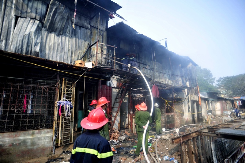 | Theo các nhân chứng, lửa xuất phát từ một xưởng hàn xì nằm giữa khu nhà 'ổ chuột' sau đó lan ra. Xung quanh có nhiều vật liệu dễ cháy như gỗ, xốp... Những người dân quanh khu nhà tạm và công nhân gần đó khi phát hiện đã nhanh chóng lao vào đập cửa gọi những người còn đang ngủ chạy ra ngoài. |
