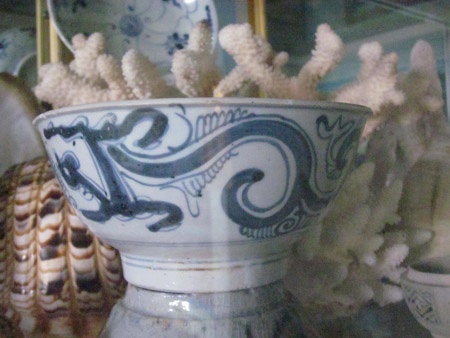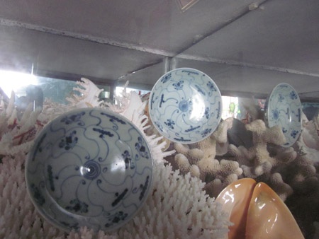 | Cổ vật được người dân trưng bày trong tủ kính chờ được giá để bán cho giới buôn đồ cổ. |