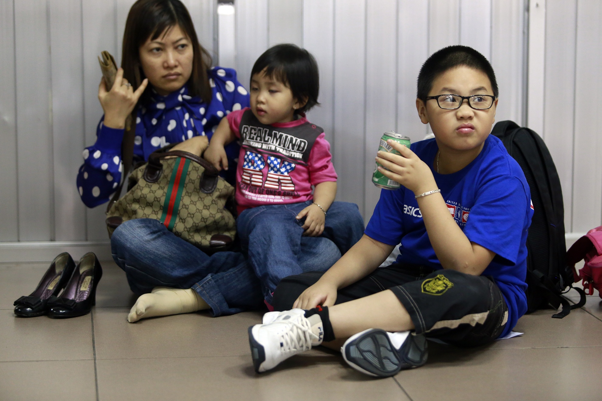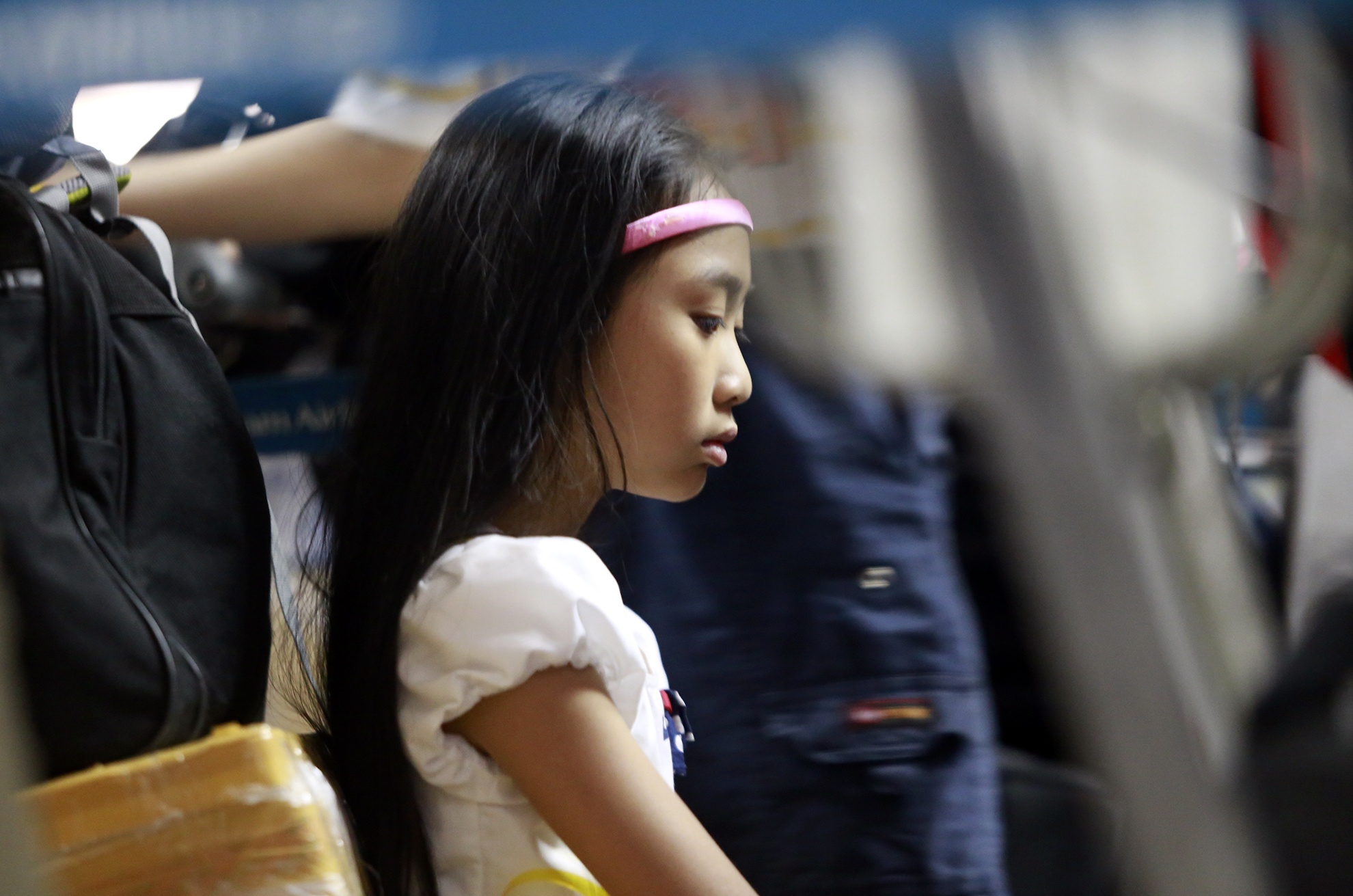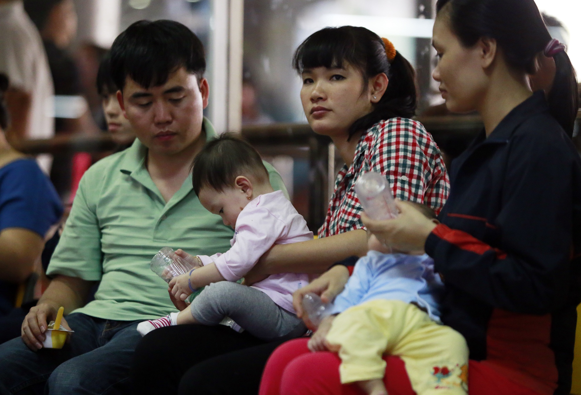 | Các em phải xếp hàng cả giờ cùng cha mẹ do quá đông hành khách bay vào những ngày cận Tết Nguyên đán. |