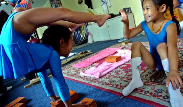 Các bé gái Mông Cổ thường tập luyện uốn dẻo 3 giờ một ngày khi các mới chừng 5 tuổi với hy vọng có thể kiếm sống bằng nghề xiếc trong tương lai.