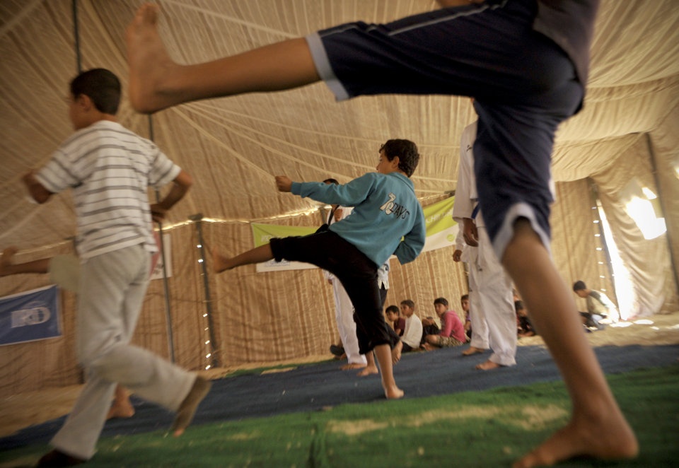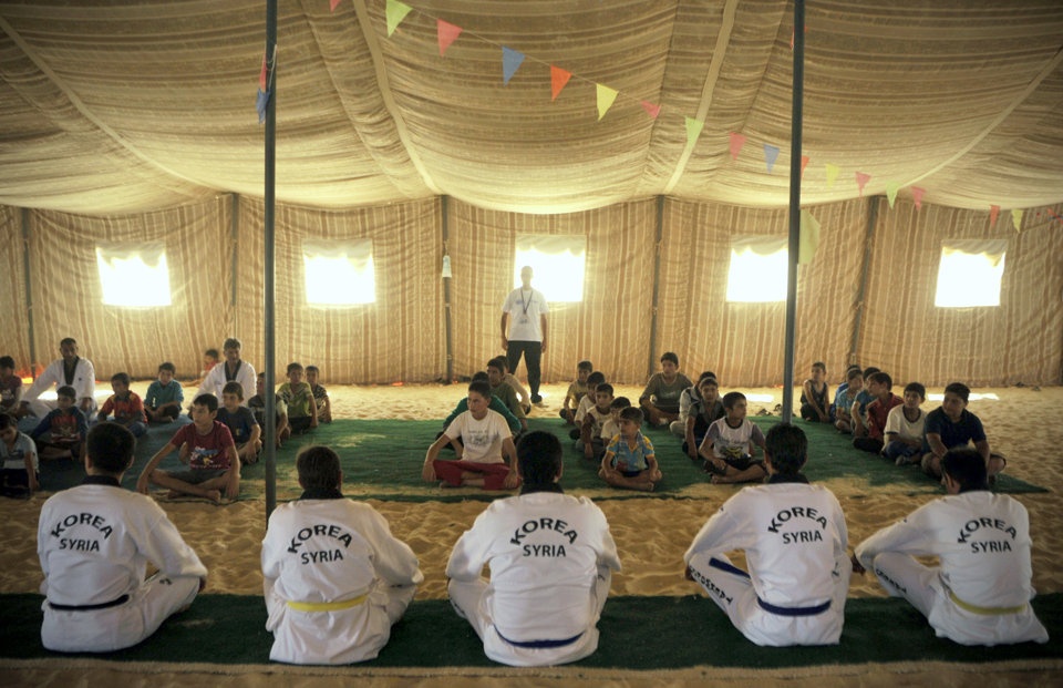 Taekwondo đã đến với trại tị nạn lớn thứ hai thế giới. Một nhóm huấn luyện viên người Hàn Quốc nói rằng, công việc huấn luyện của họ không chỉ nhằm truyền đạt cho học viên là các em nhỏ Syria những động tác võ thuật lôi cuốn, hấp dẫn, mà còn giúp những đứa trẻ này (vốn bị ảnh hưởng nặng nề bởi cuộc nội chiến đang kéo dài) tuân thủ kỷ luật và hành xử tốt hơn.