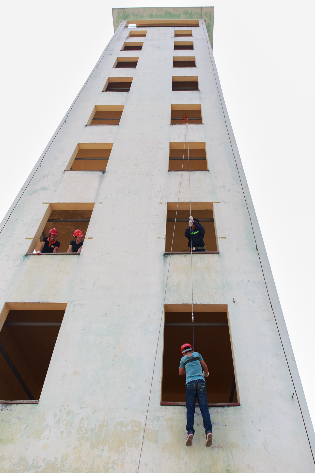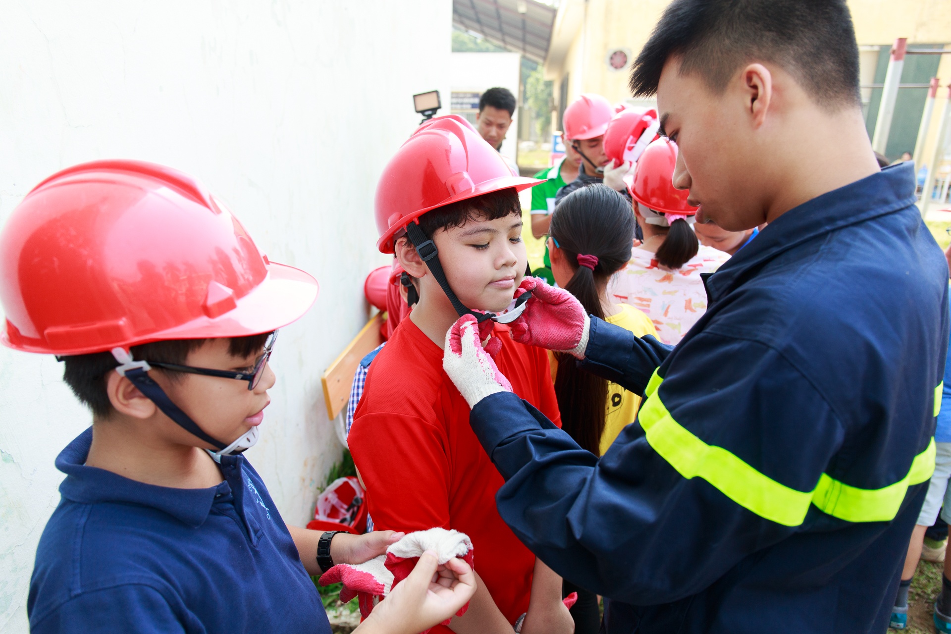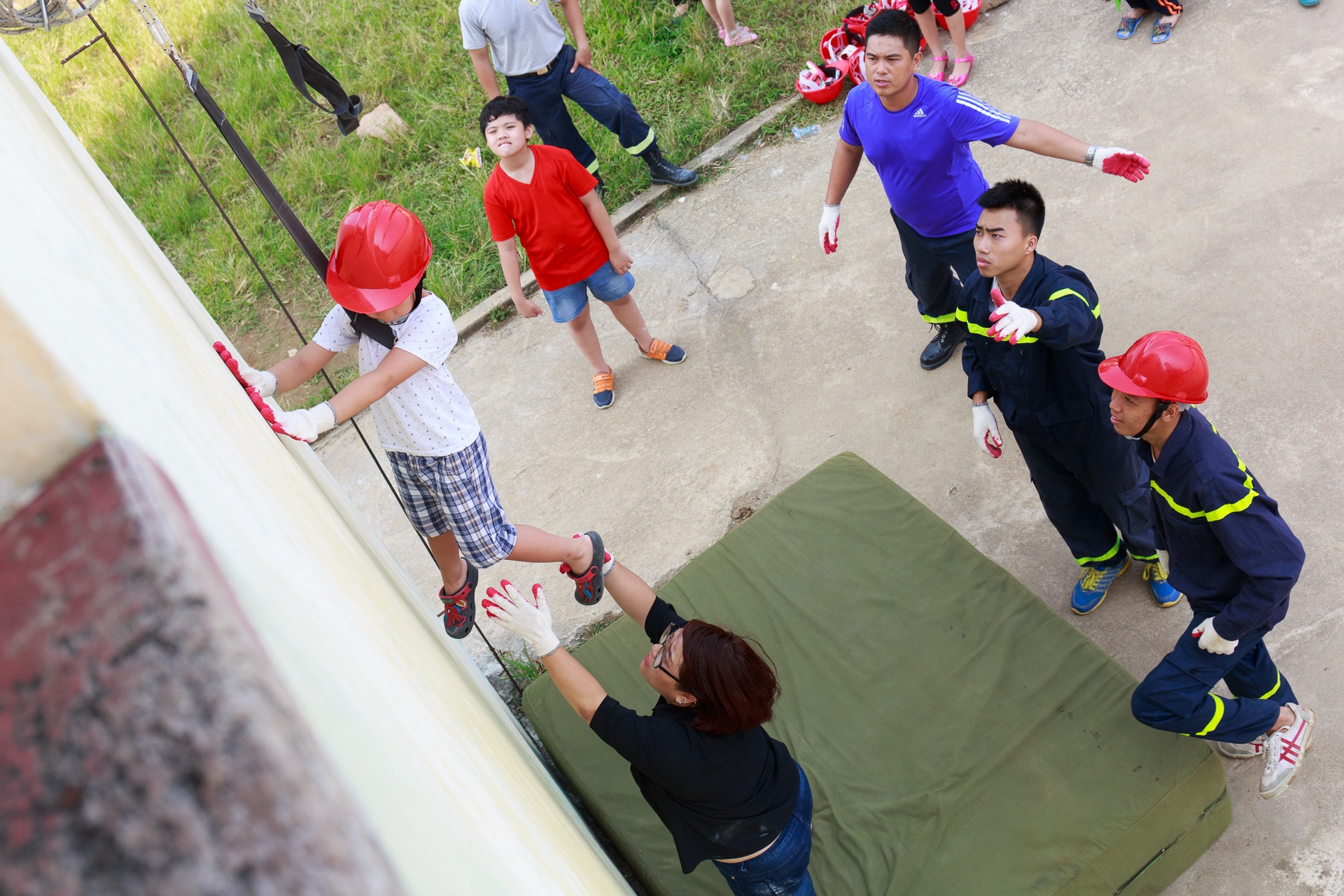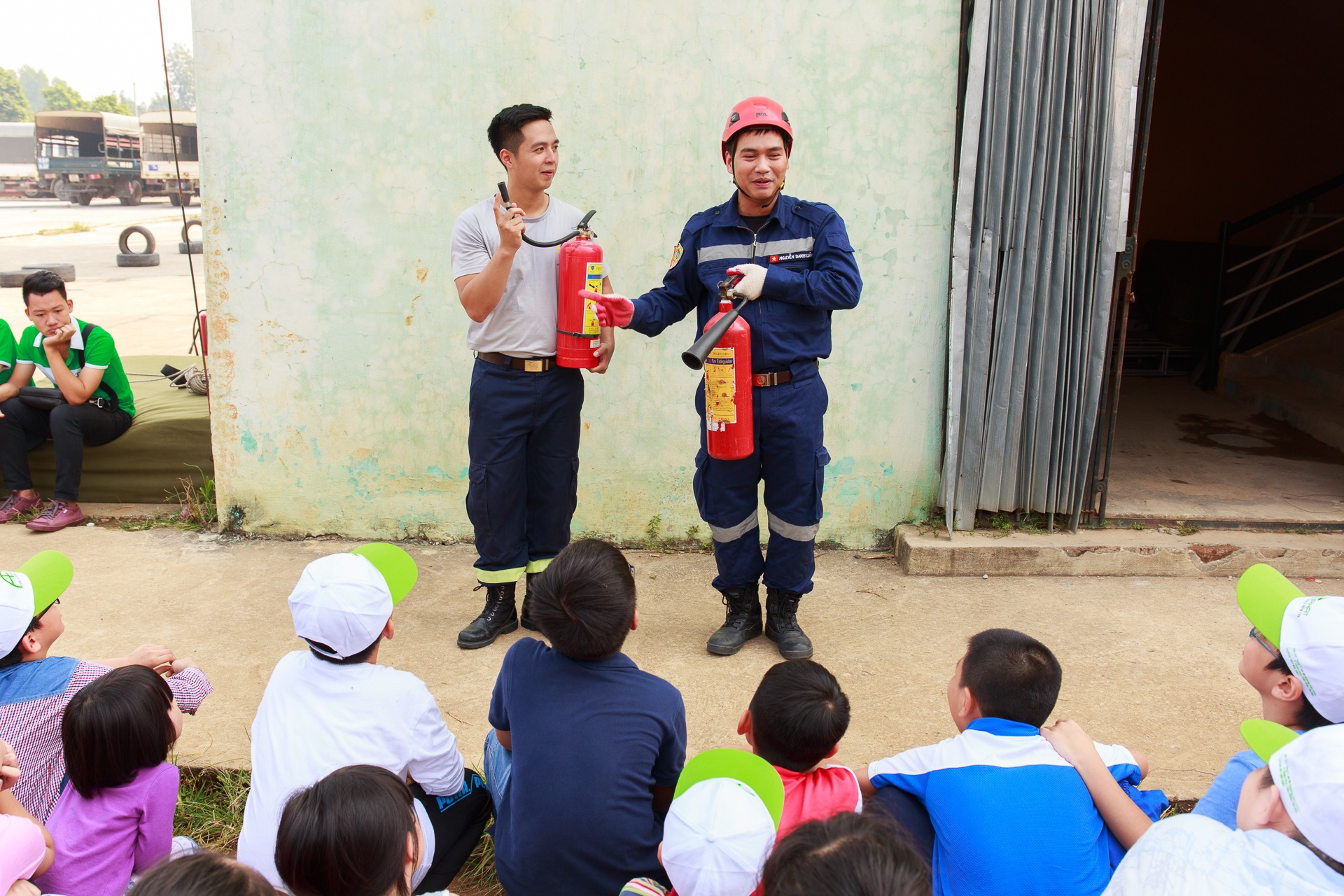 Buổi học được tổ chức tại Lương Sơn, Hòa Bình (cơ sở 2 của Đại học Phòng cháy Chữa cháy). Với trang thiết bị đầy đủ và đảm bảo an toàn, các giảng viên liên tiếp tạo ra những tình huống giả định như vượt chướng ngại vật hay đu dây thoát hiểm từ nhà cao tầng để rèn kỹ năng thoát hiểm cho học sinh.