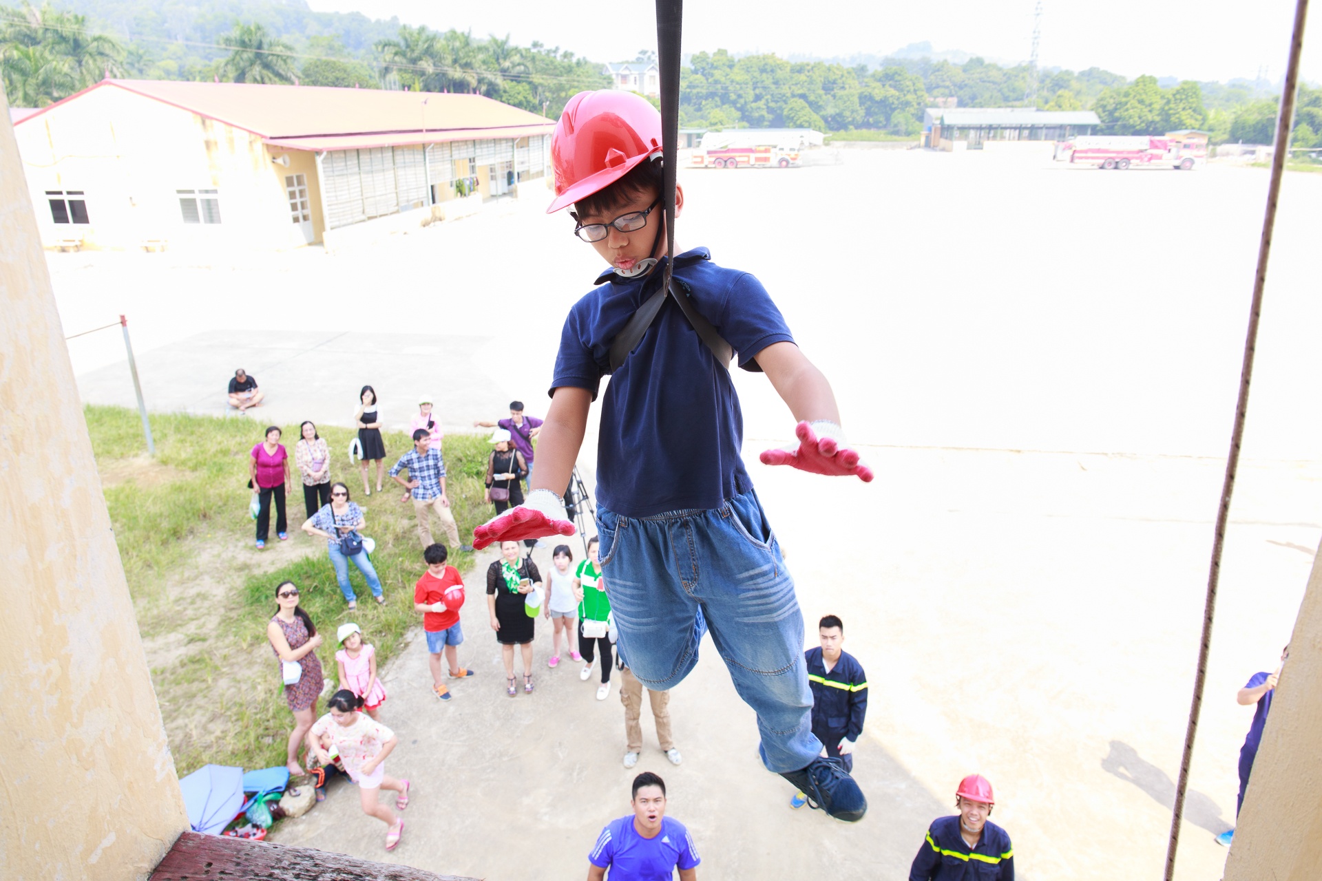 Hầu hết các bé tham gia buổi học đều là học sinh lớp 5. Số khác ít tuổi hơn được phụ huynh đưa đi cùng. Tất cả được dạy cách vượt qua nỗi sợ hãi để thoát hiểm.