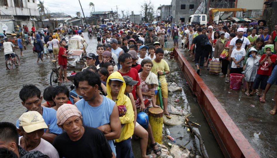 Hàng chục người dân thành phố Tacloban xếp hàng trước một cửa hàng lương thực để xin gạo. Ảnh: Reuters.
