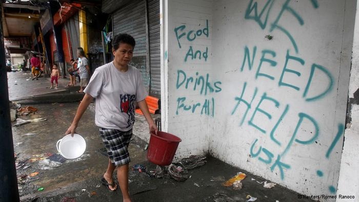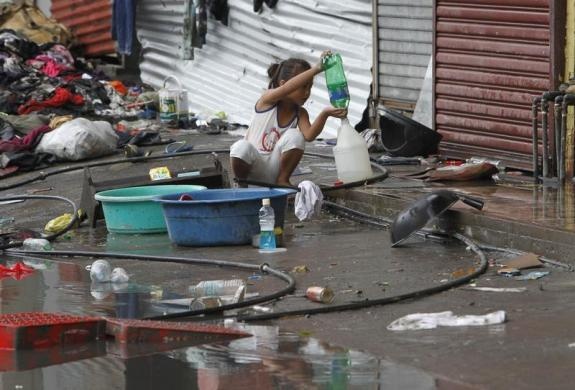 Trẻ em vùng bão Philippines đổ ra đường để xin ăn
