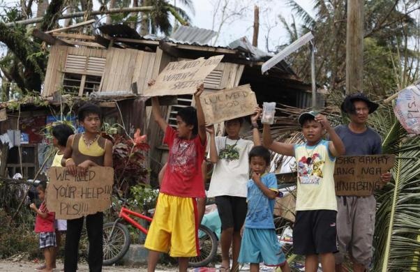 Gần một tuần sau khi bão Haiyan đổ bộ, rất nhiều trẻ em buộc phải ra đường để xin thức ăn, nước và những nhu yếu phẩm khác.