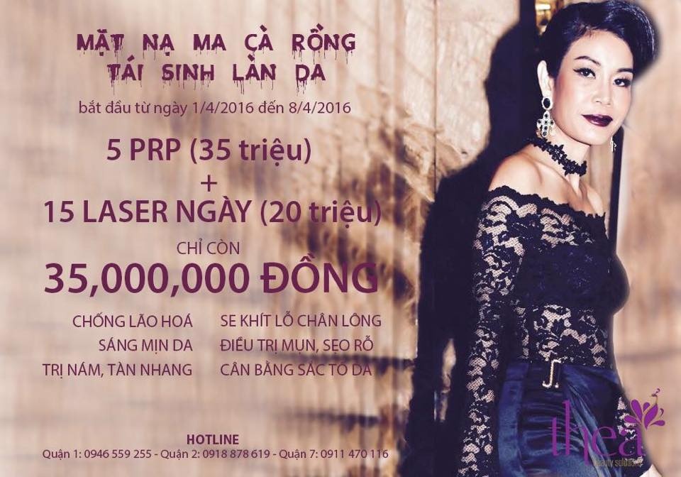 Từ 1/4 đến 8/4, Thea triển khai chương trình ưu đãi mua 5 lần PRP và 20 lần laser ngày chỉ còn 35 triệu đồng. Thông tin chi tiết, độc giả truy cập fanpage của Thea.