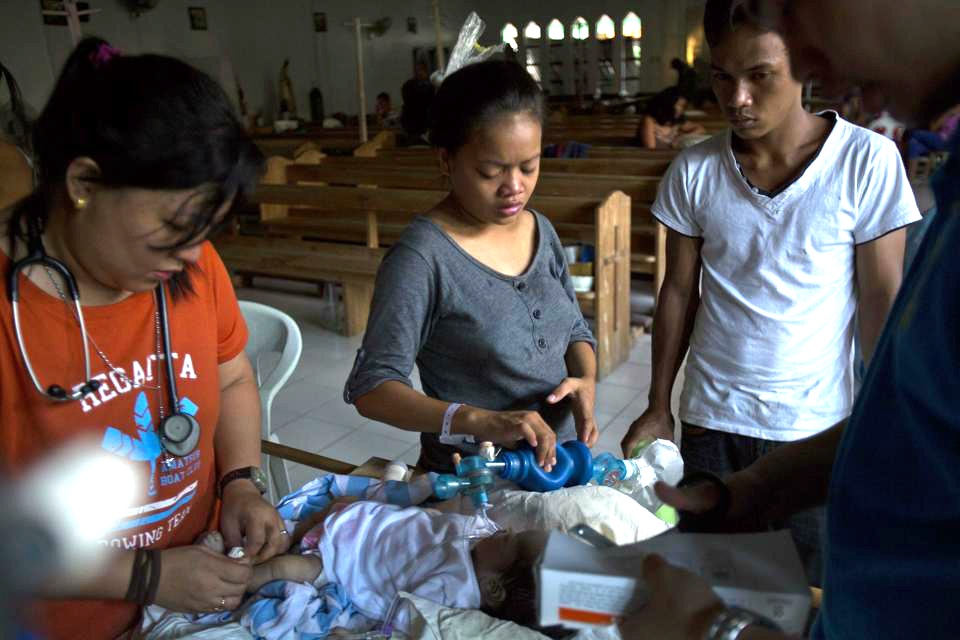 "Nếu cha, mẹ ngừng bóp, đứa trẻ sẽ chết. Cháu không thể tự thở. Nhịp tim là dấu hiệu duy nhất chứng tỏ đứa trẻ vẫn sống", Amie Sia, một y tá tại bệnh viện tạm thời tại thành phố Tacloban, nói.