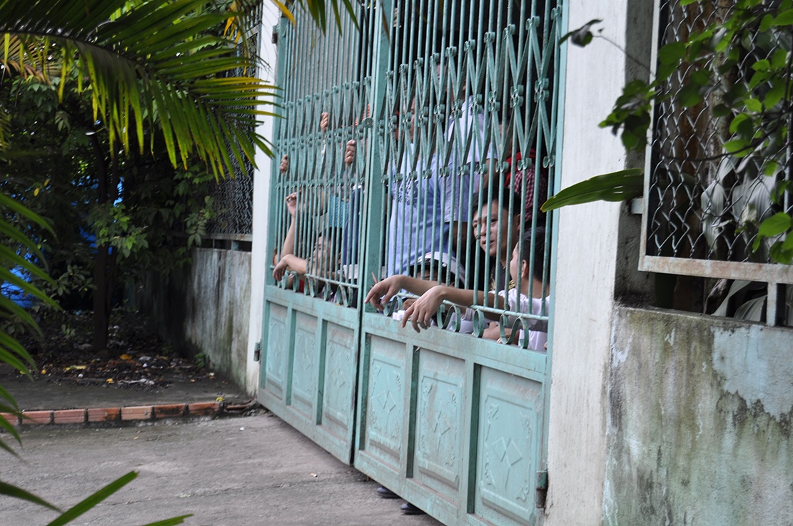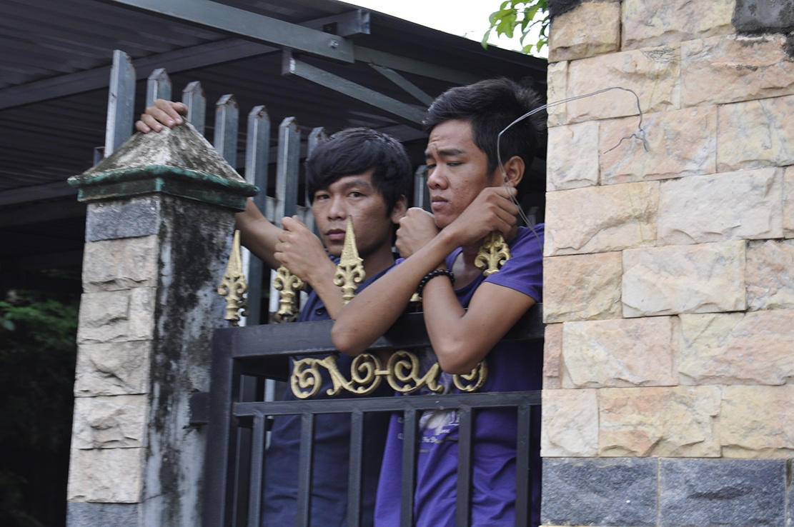 Sáng 11/8, nhà chức trách đưa 2 nghi can vụ thảm sát ở Bình Phước đến thực nghiệm hiện trường. Người dân tìm mọi cách theo dõi vụ việc vì công an không cho tụ tập trước biệt thự.