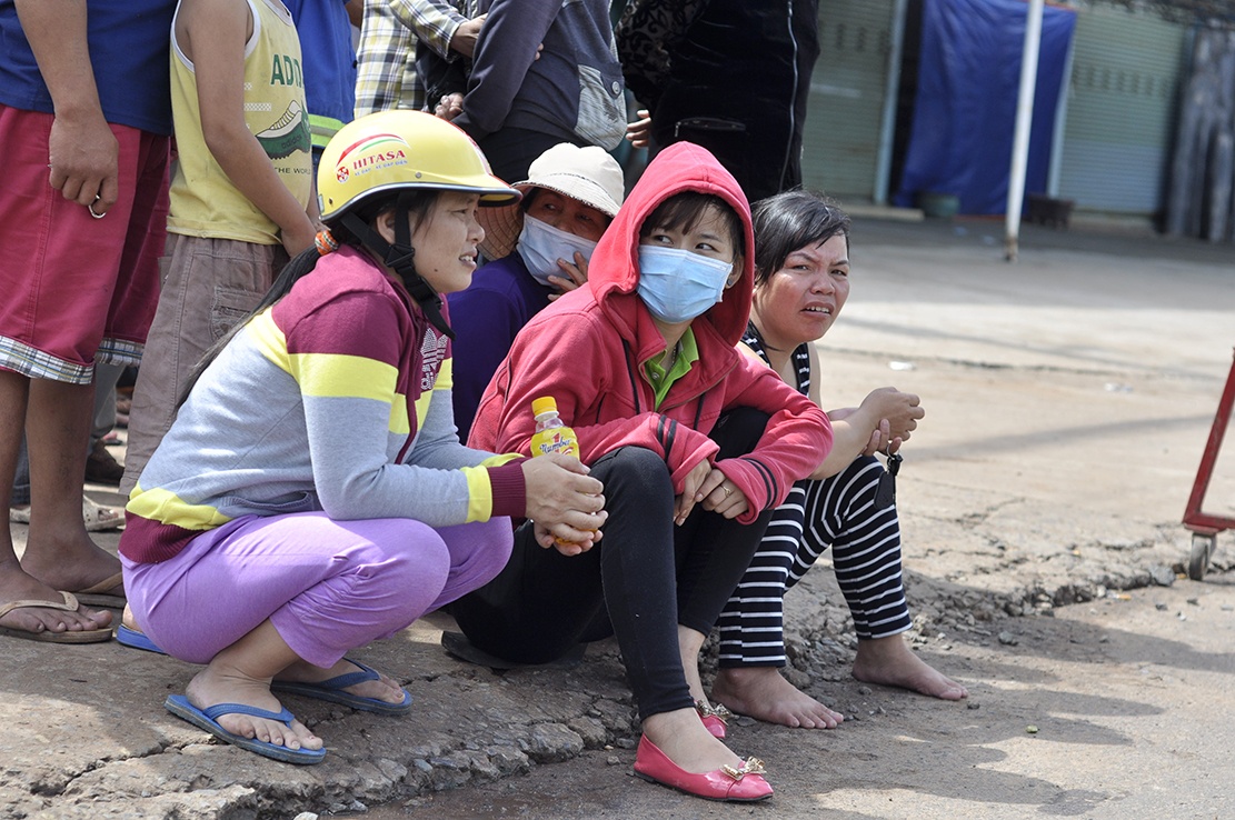 | Vì công an không cho tụ tập ở vỉa hè và lòng đường nên người dân vào sân nhà, đóng cổng lại theo dõi công an dựng hiện trường. |
