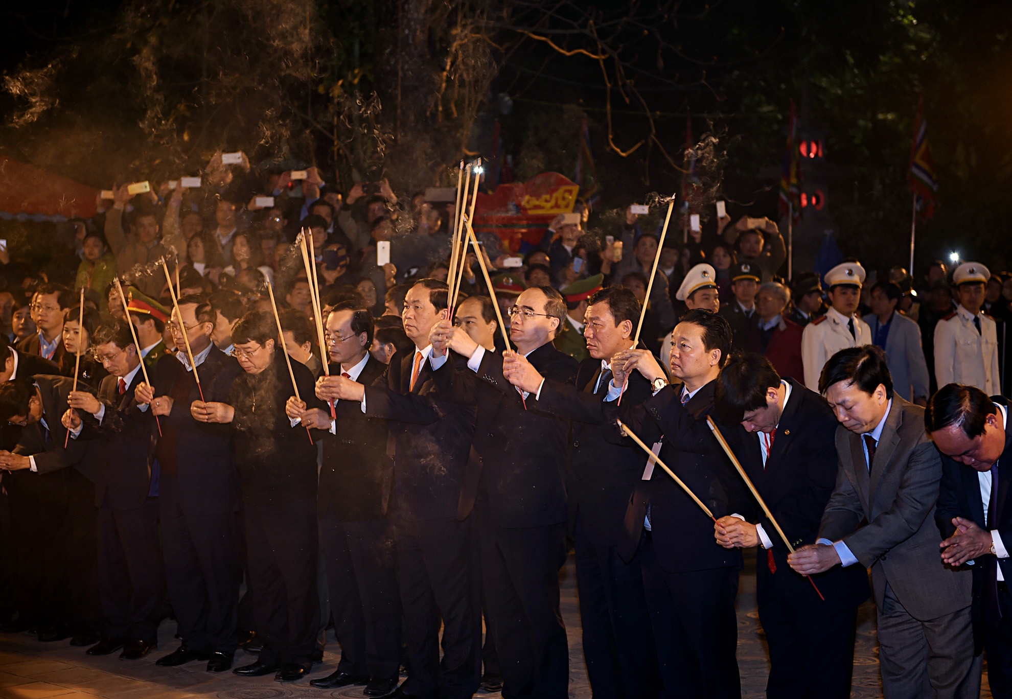 Đến dự lễ khai ấn Đền Trần có ông Nguyễn Thiện Nhân - Chủ tịch Ủy ban Trung ương Mặt trận Tổ quốc Việt Nam, Bộ trưởng Bộ Công an, Trần Đại Quang và nhiều quan chức địa phương.