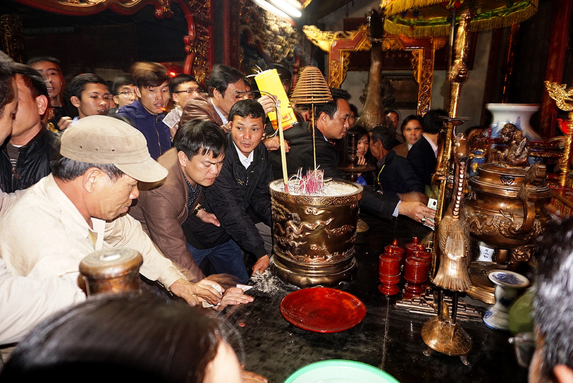 Năm nay, hậu cung đền Thiên Trường không mở cho người dân vào nhưng vẫn xảy ra tình trạng hỗn loạn, chen lấn xô đẩy tại những gian thờ bên ngoài.