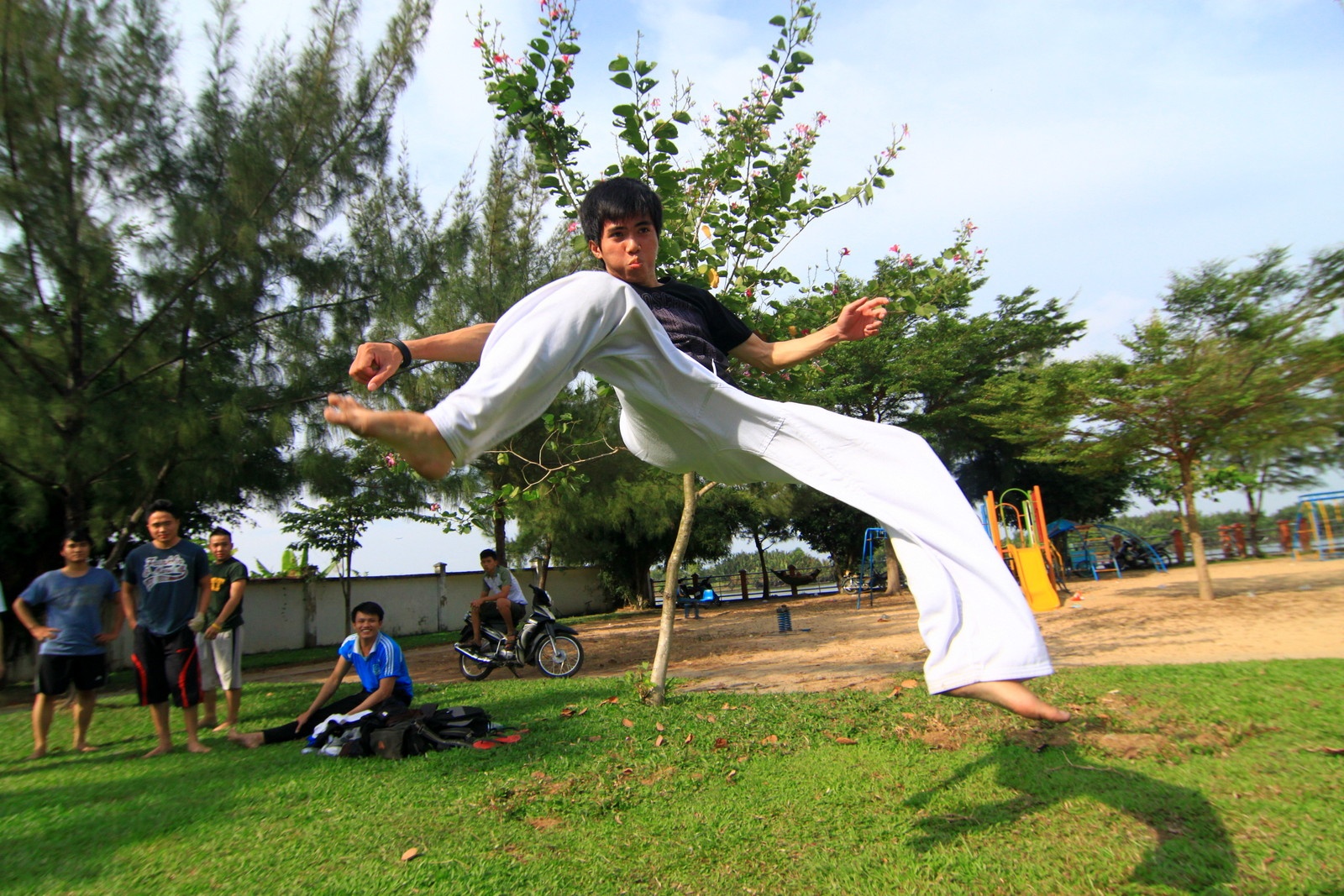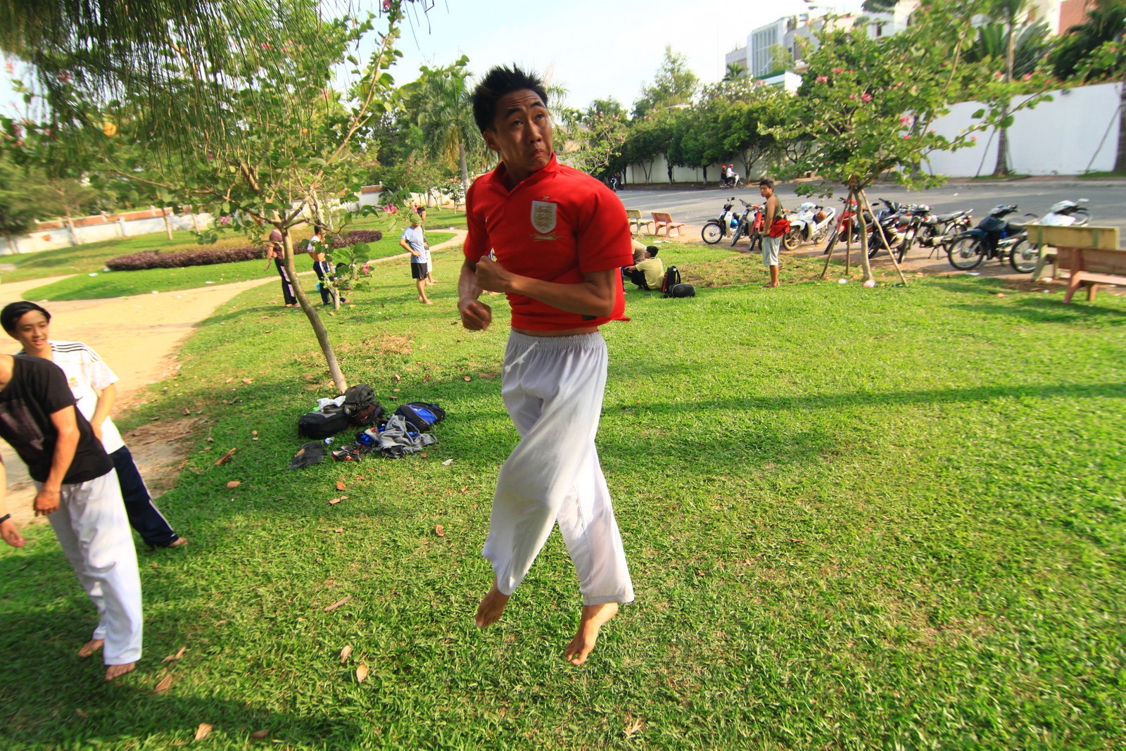 | Nguyễn Trọng Đại (22 tuổi, ĐH GTVT TP.HCM) đang thi triển kĩ thuật trong tricking. Đại là người sáng lập nhóm T-Rex Tricking. Tập môn thể thao này cách đây 2 năm qua các clip trên mạng, tháng 6/2013 Đại quyết định lập nhóm để tìm người luyện tập cùng. Theo Đại đây là nhóm tricking đầu tiên và duy nhất ở TP.HCM. |