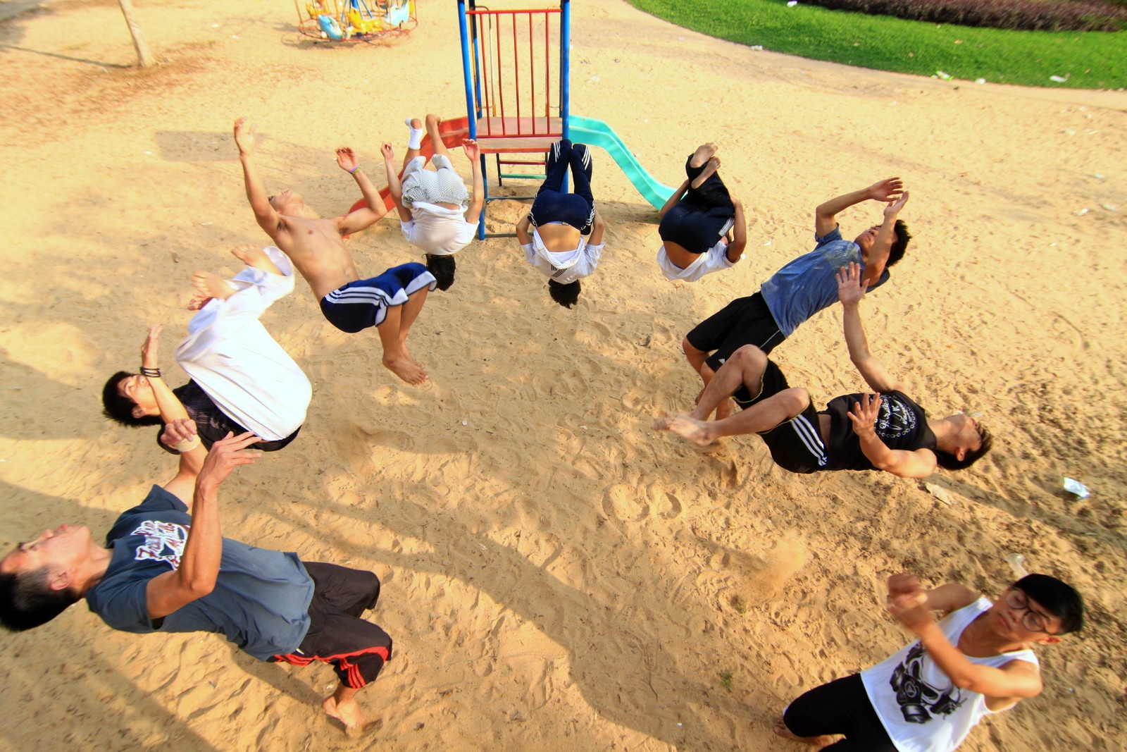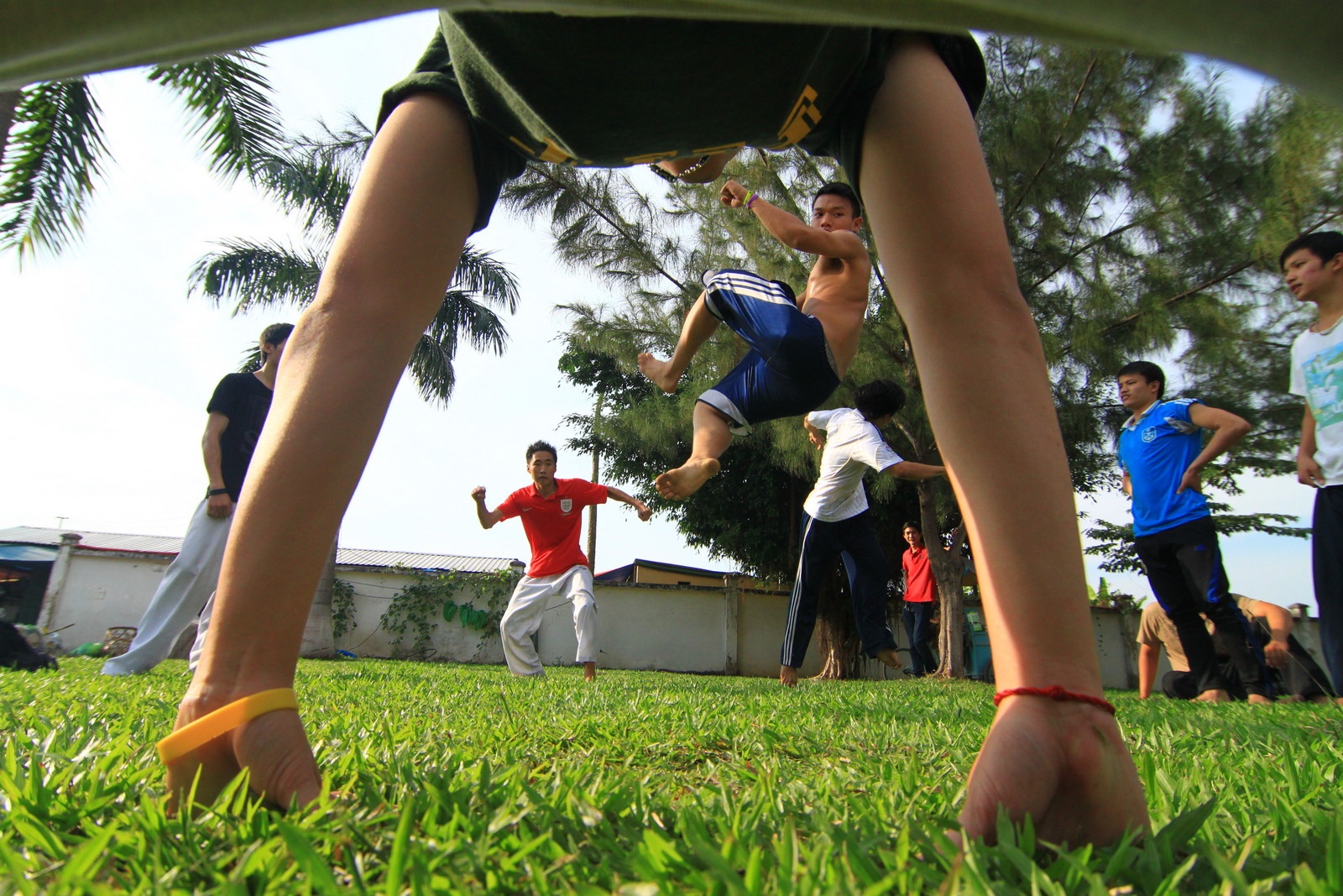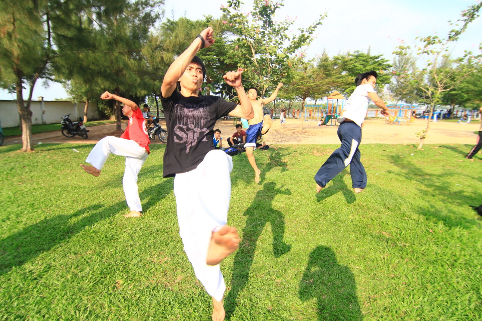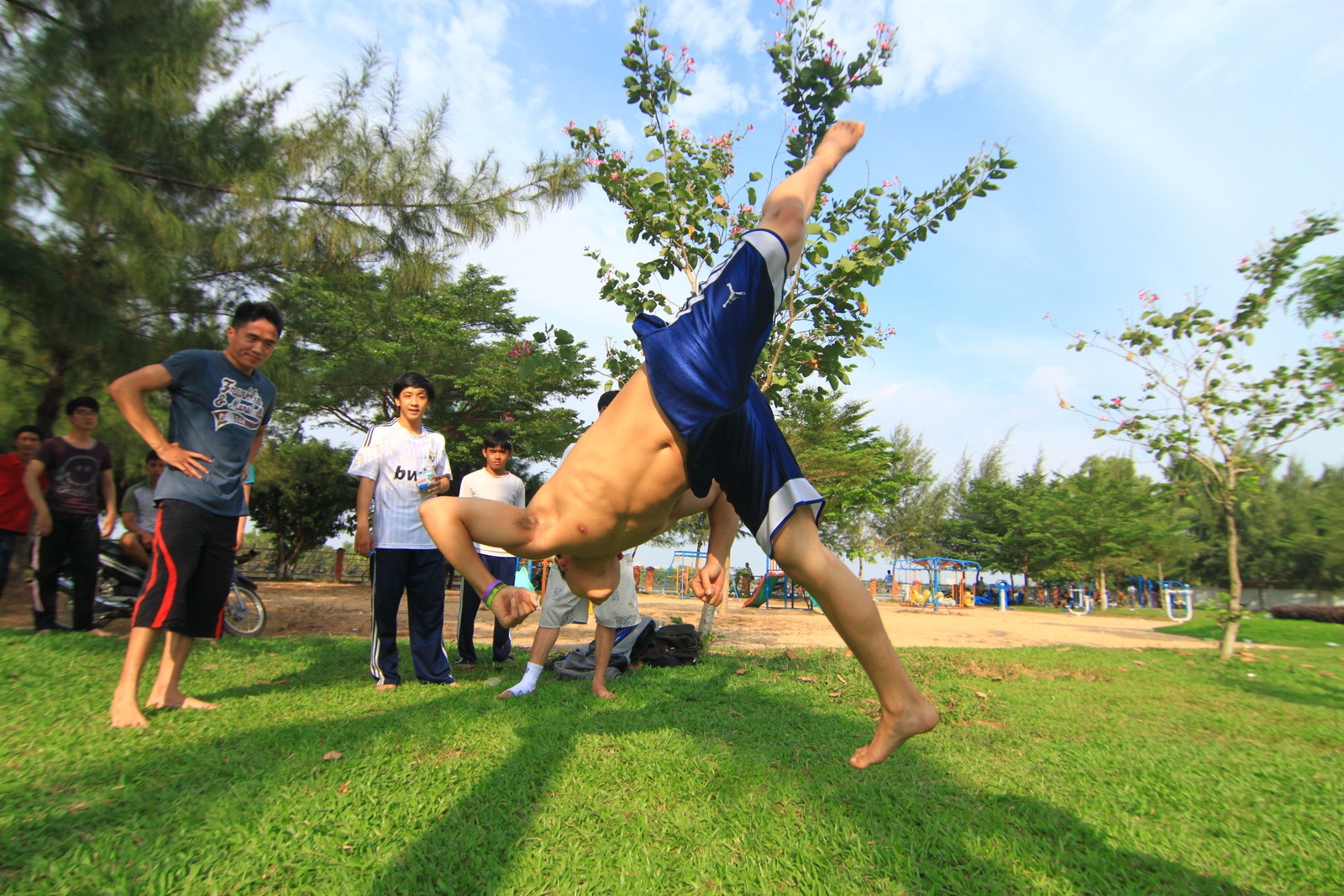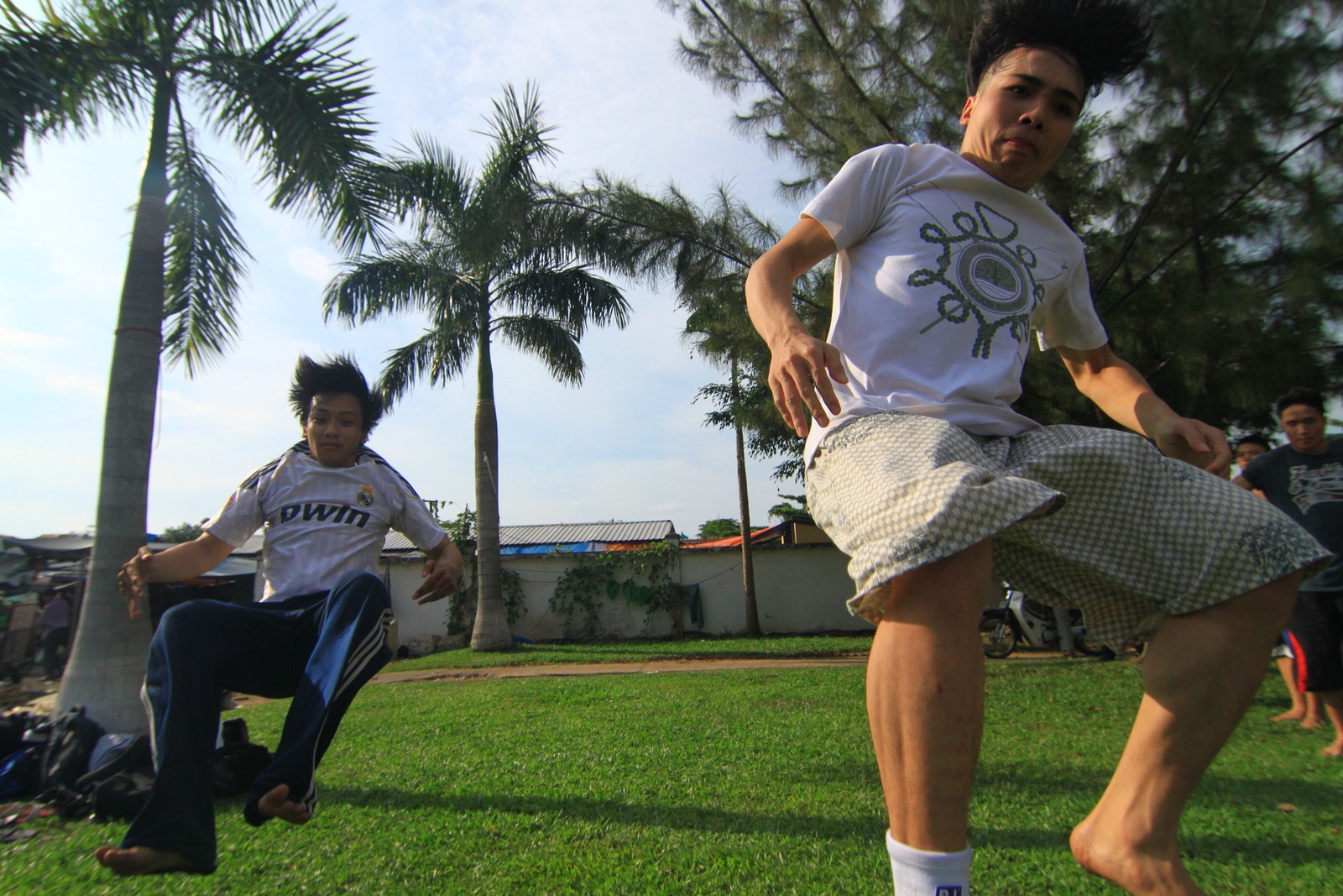| Nhào lộn thành vòng trên thảm cỏ. Môn thể thao này yêu cầu phải tập luyện trên sân tập có nệm. Nhưng vì không có đủ tiền thuê sân nên các thành viên tìm đến những nơi có thảm cỏ, bãi cát, nếu không thì nhóm phải tập ở nền xi măng. |