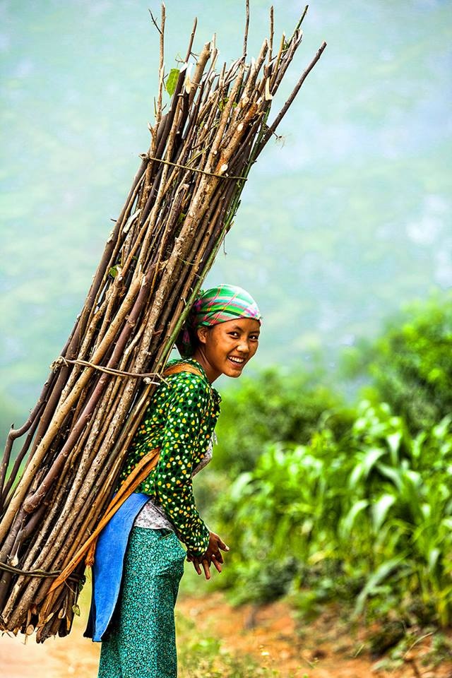 Nụ cười của một cô gái ở Hoàng Su Phì khi đang làm việc.