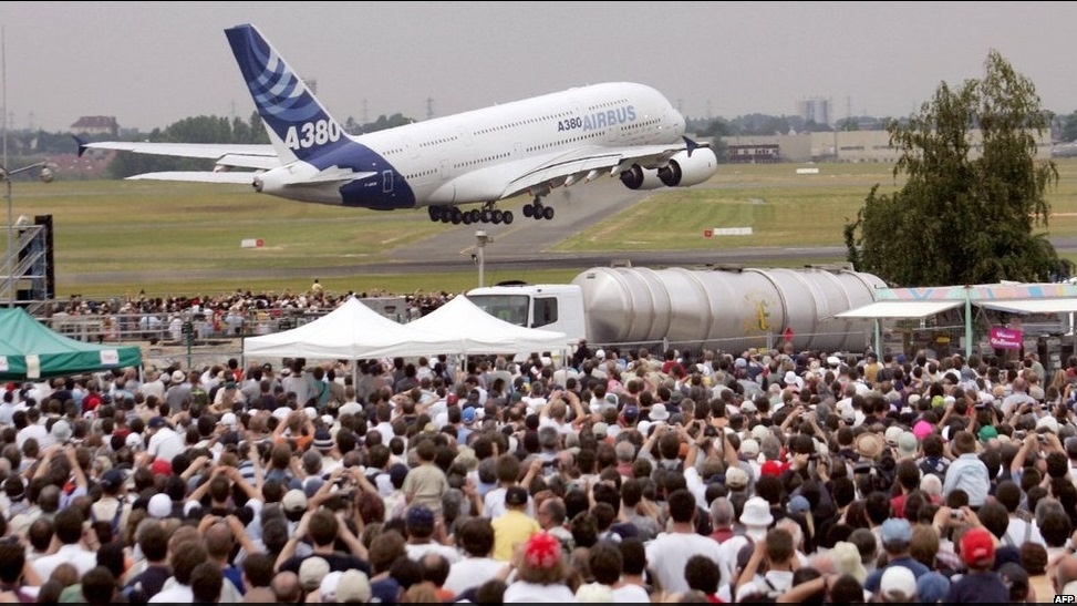 Đầu năm 2006, hãng sản xuất máy bay Boeing (Mỹ) thông báo, năm 2005 là năm rất “hên” với Boeing khi chính thức nhận được đơn đặt hàng tới 1.002 máy bay, phá vỡ kỷ lục đứng vững 17 năm (năm 1988, Boeing nhận được đơn đặt hàng kỷ lục là 877 chiếc máy bay chở khách các loại). Ngay ngày đầu tiên của triển lãm năm 2007, Airbus đã bán được 339 máy bay các loại trong đó có cả thế hệ mới như A350, A380 với doanh thu 45 tỷ USD. Boeing cũng bán được 46 chiếc trong ngày đầu tiên mở cửa Triển lãm Hàng không Quốc tế Paris 2006. Ảnh: AFP