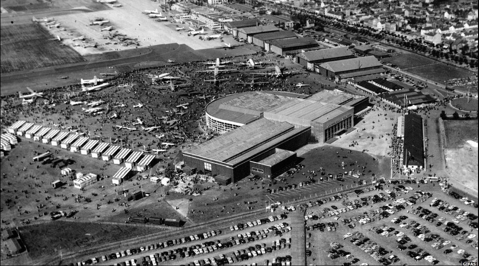 | Bức ảnh với khung cảnh hoành tráng từ triển lãm năm 1934. Đây cũng là đợt triển lãm cuối của Paris Air Show trước khi gián đoạn vì Chiến tranh thế giới thứ II. |