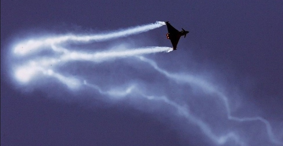 | Máy bay chiến đấu của châu Âu trình diễn tại triển lãm năm 2005. Dù có những màn bay lượn đẹp mắt, chiếc chiến đấu cơ này không gây được sự chú ý của người xem như 2 đối thủ nặng ký là Airbus và Boeing. |