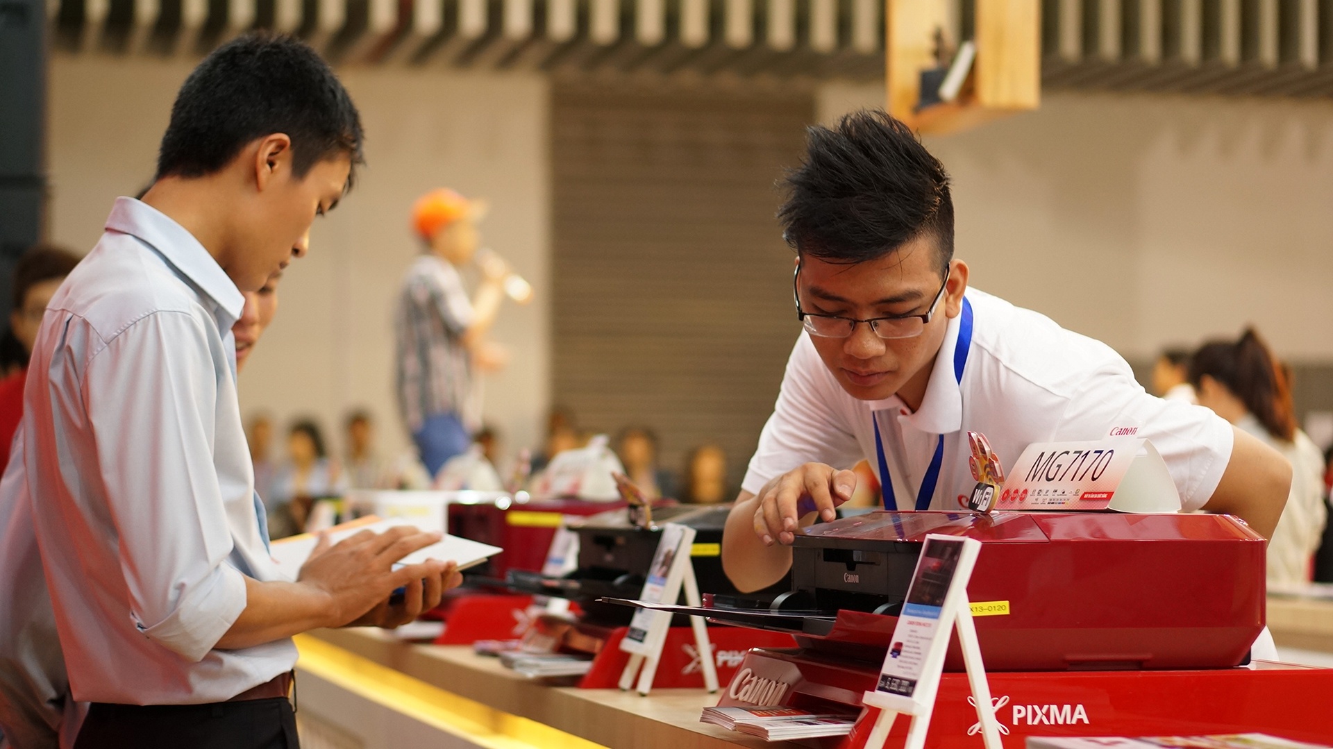 | Khách tham quan được trực tiếp trải nghiệm những thiết bị của Canon. |