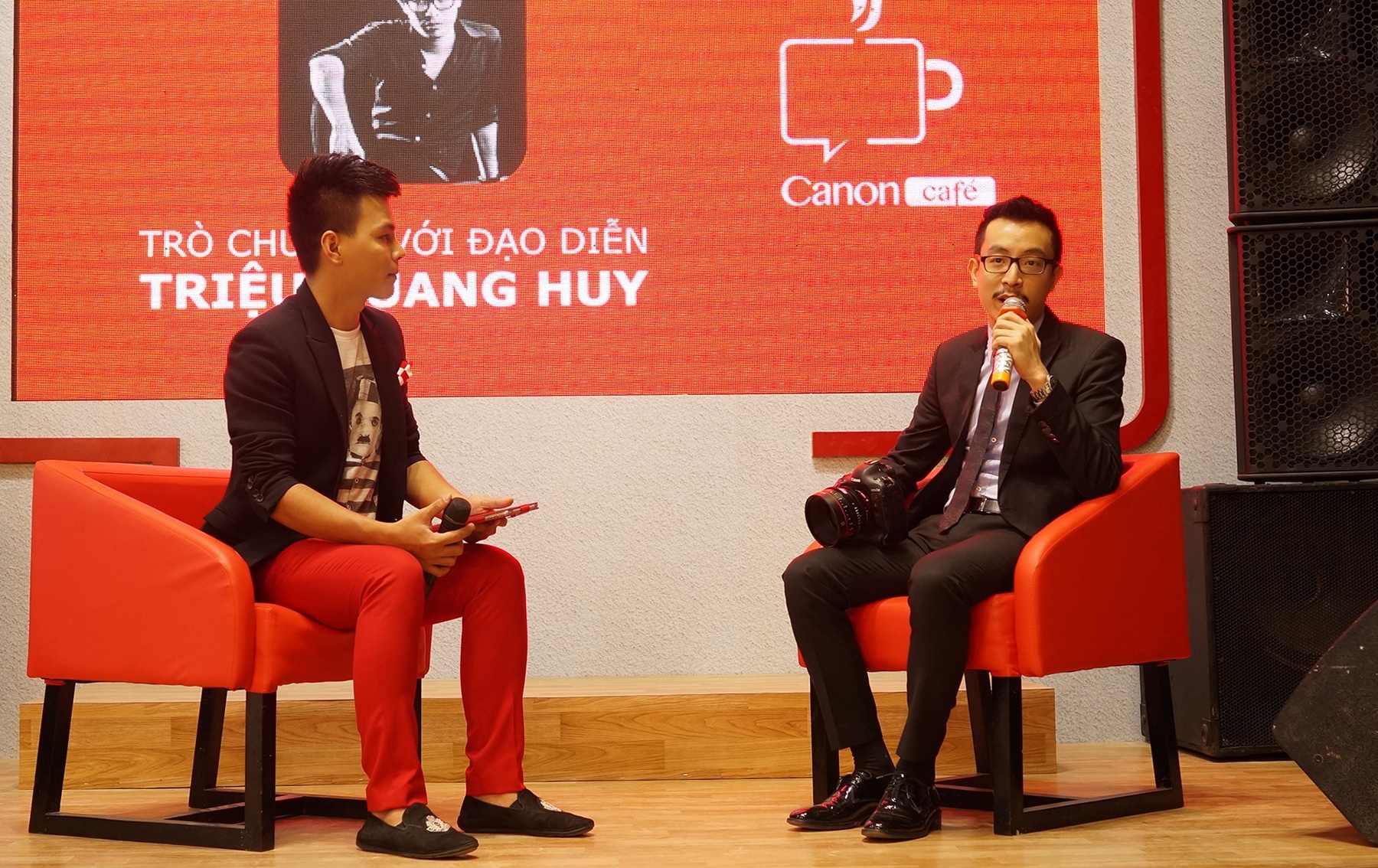 | Đạo diễn trẻ Triệu Quang Huy cũng có mặt để giao lưu tại sân khấu riêng của Canon. |