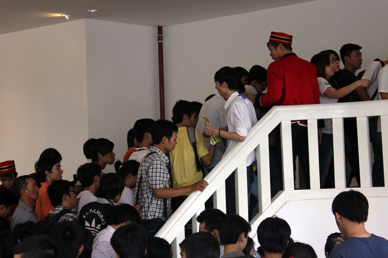 | Đúng 9h, triển lãm mở cửa, rất đông khách tham quan trẻ là sinh viên đã xếp hàng từ trước đó đi lên cửa ra vào. Năm nay, sự kiện tổ chức tại Riverside, quận 4, TP.HCM, không gian nhỏ hơn năm ngoái tại Tân Bình và trước đó tại quận 7. |