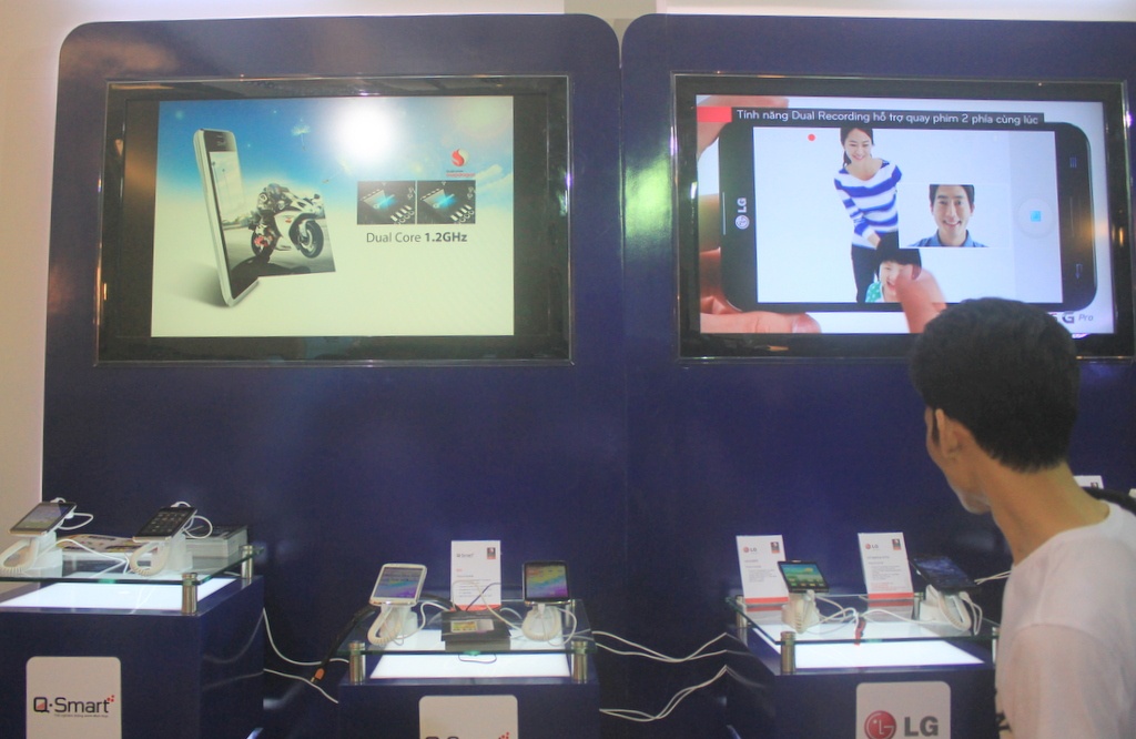 | Qualcomm là tên tuổi lớn nhất tham gia triển lãm lần này. Họ mang tới các smartphone của HTC, LG, Q-mobile... và các thiết bị điều khiển, trò chơi chạy trên nền tảng chip của mình. Gian hàng của Qualcomm cũng là tâm điểm của sự kiện. VCW 2013 không có các tên tuổi lớn như Sony, Canon tham gia như trước đây. |